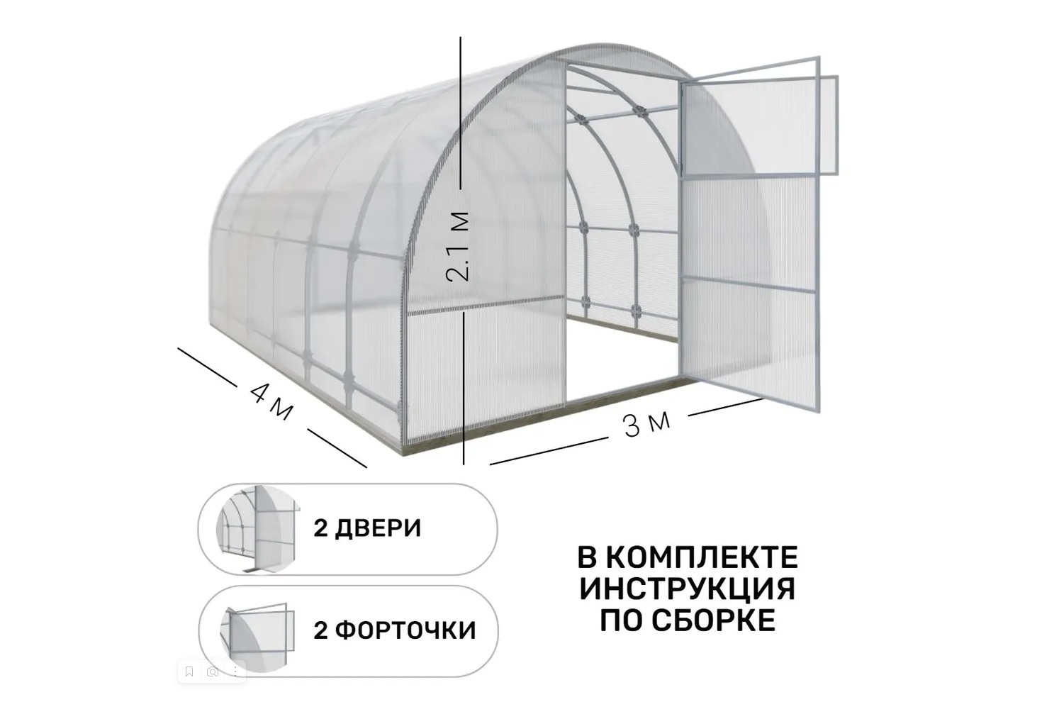 Теплица 3х4м с поликарбонатом, оцинкованным каркасом, дверями и форточкой