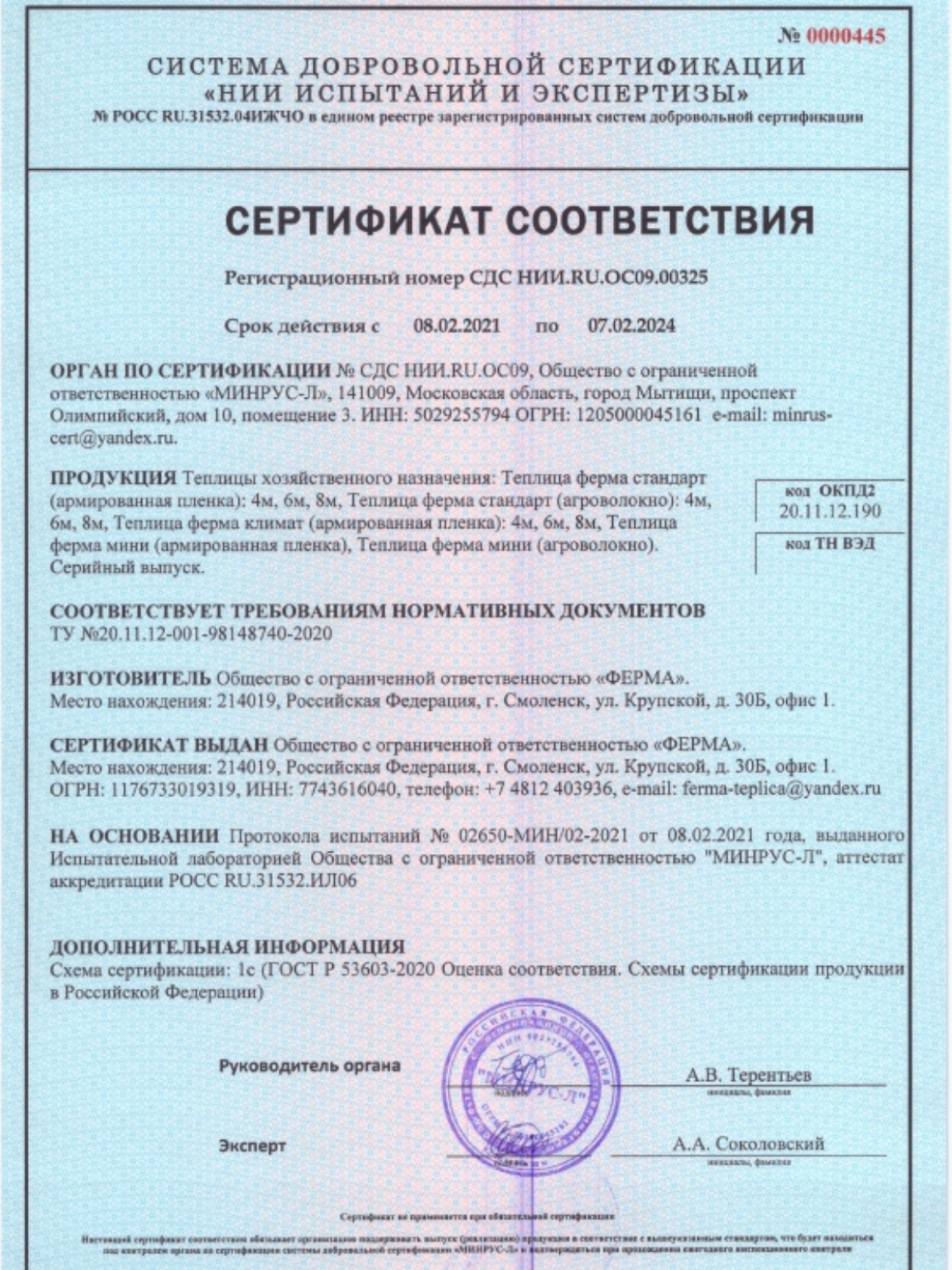 | Бренд | ТЕПЛИЦА ФЕРМА |