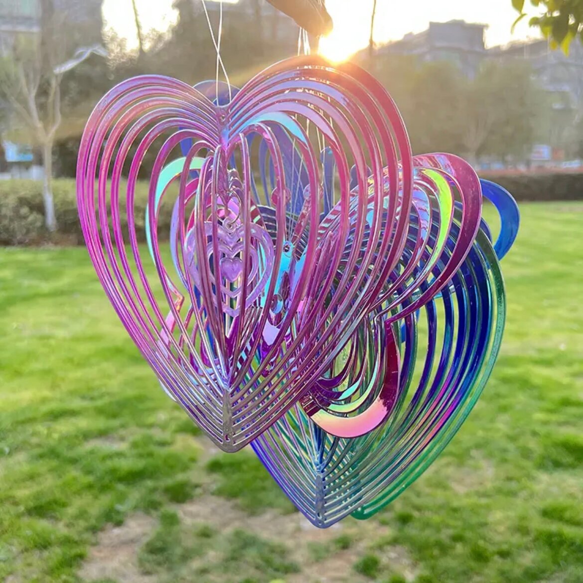Садовая фигура отпугиватель для птиц для сада / сердце - набор 2 штуки (золотое и зеленое)