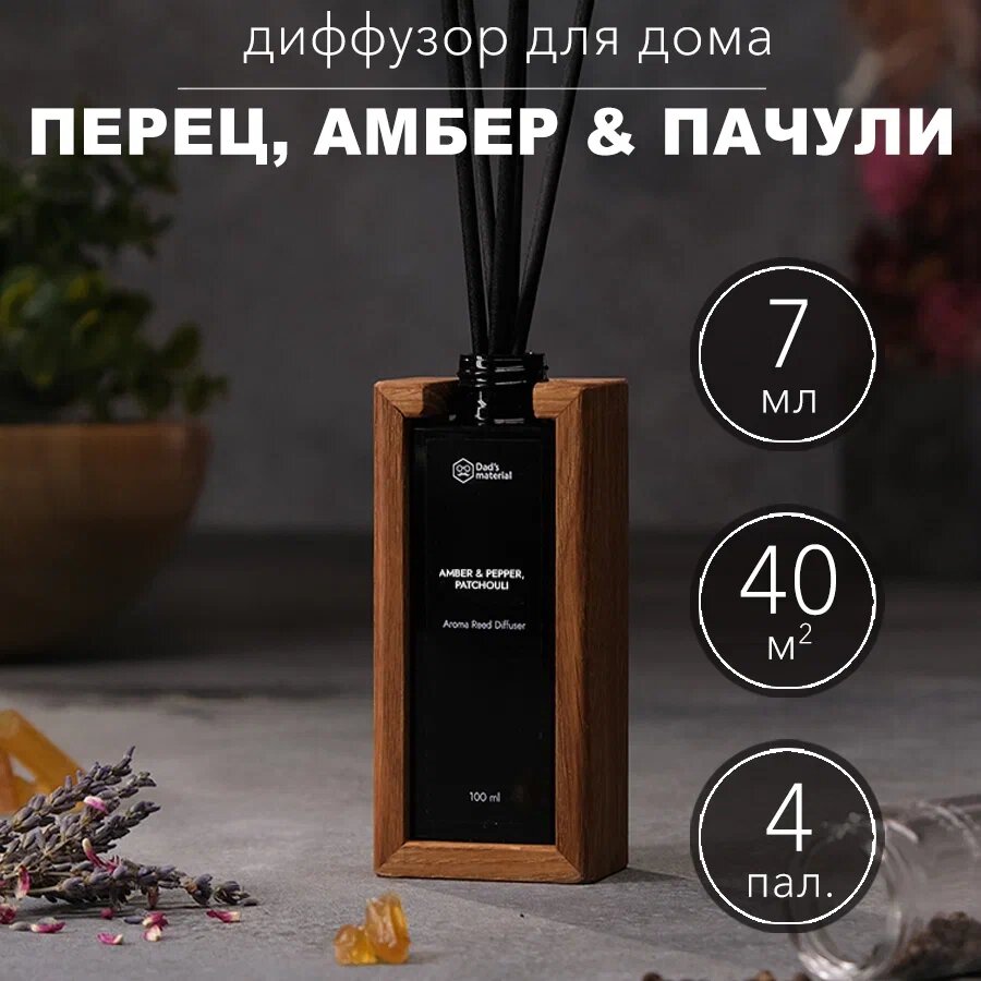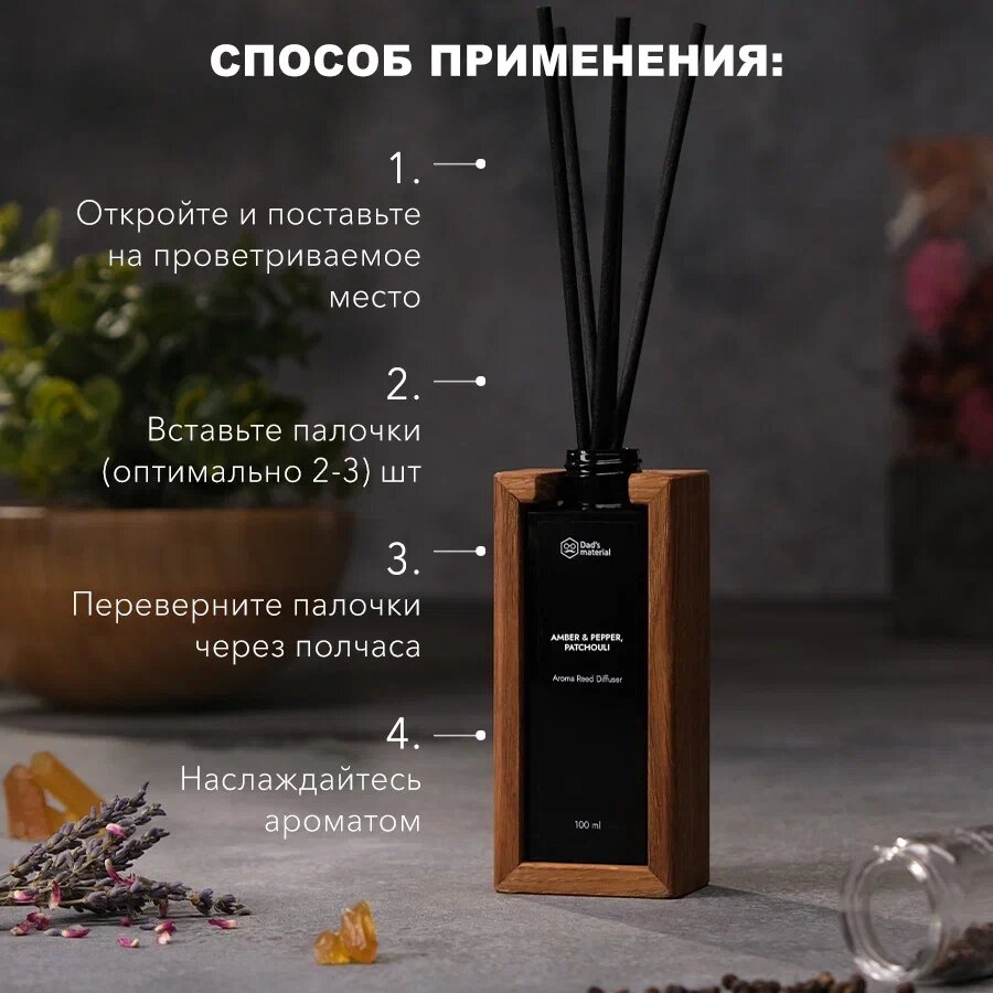 Ароматизатор для дома диффузор для дома запах с палочками "Amber & Pepper, Patchouli" Перец Dad's material