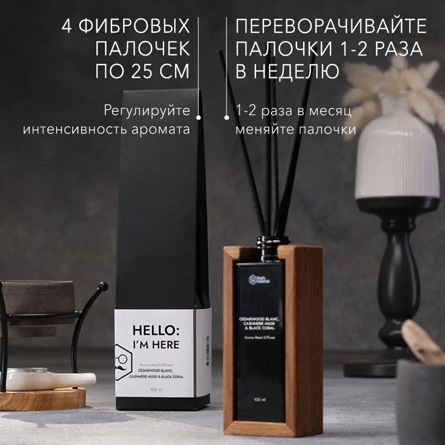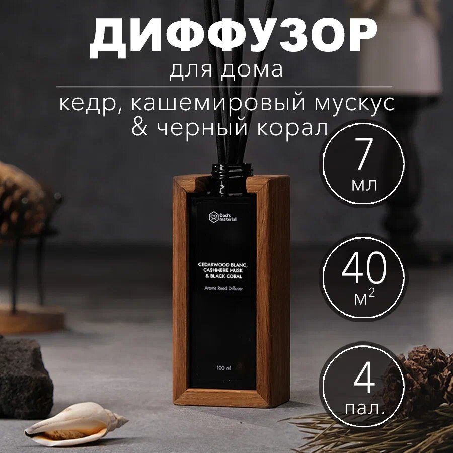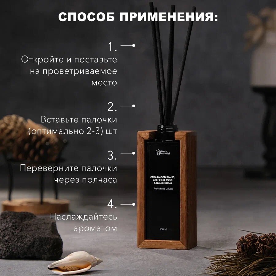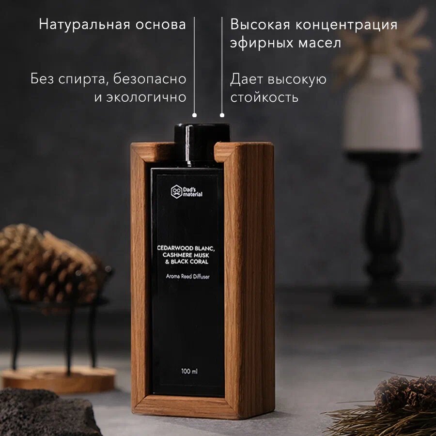 Ароматизатор для дома диффузор для дома запах с палочками "Cedarwood Blanc, Cashmere Musk & Black Coral"Кедр Dad's material