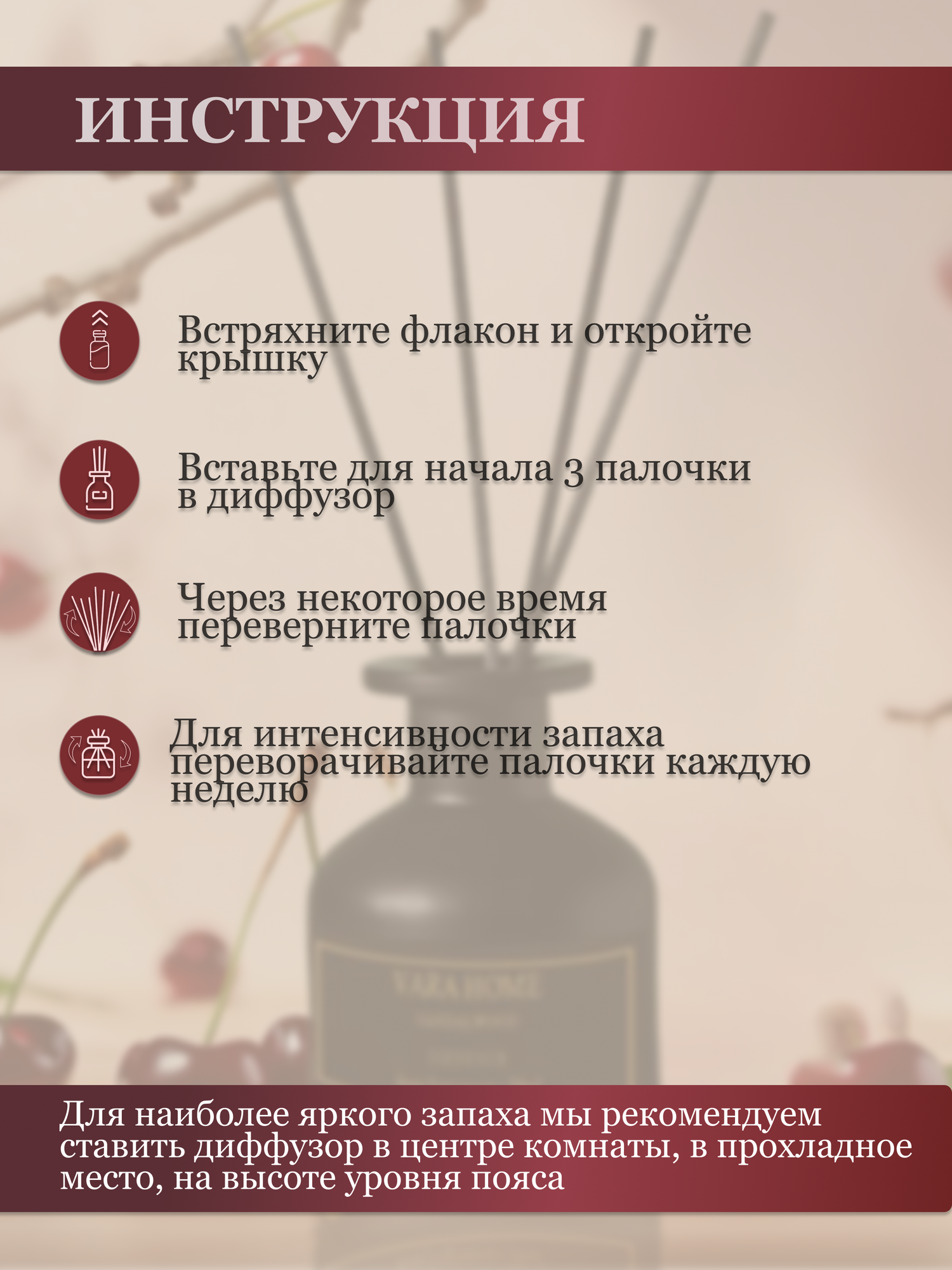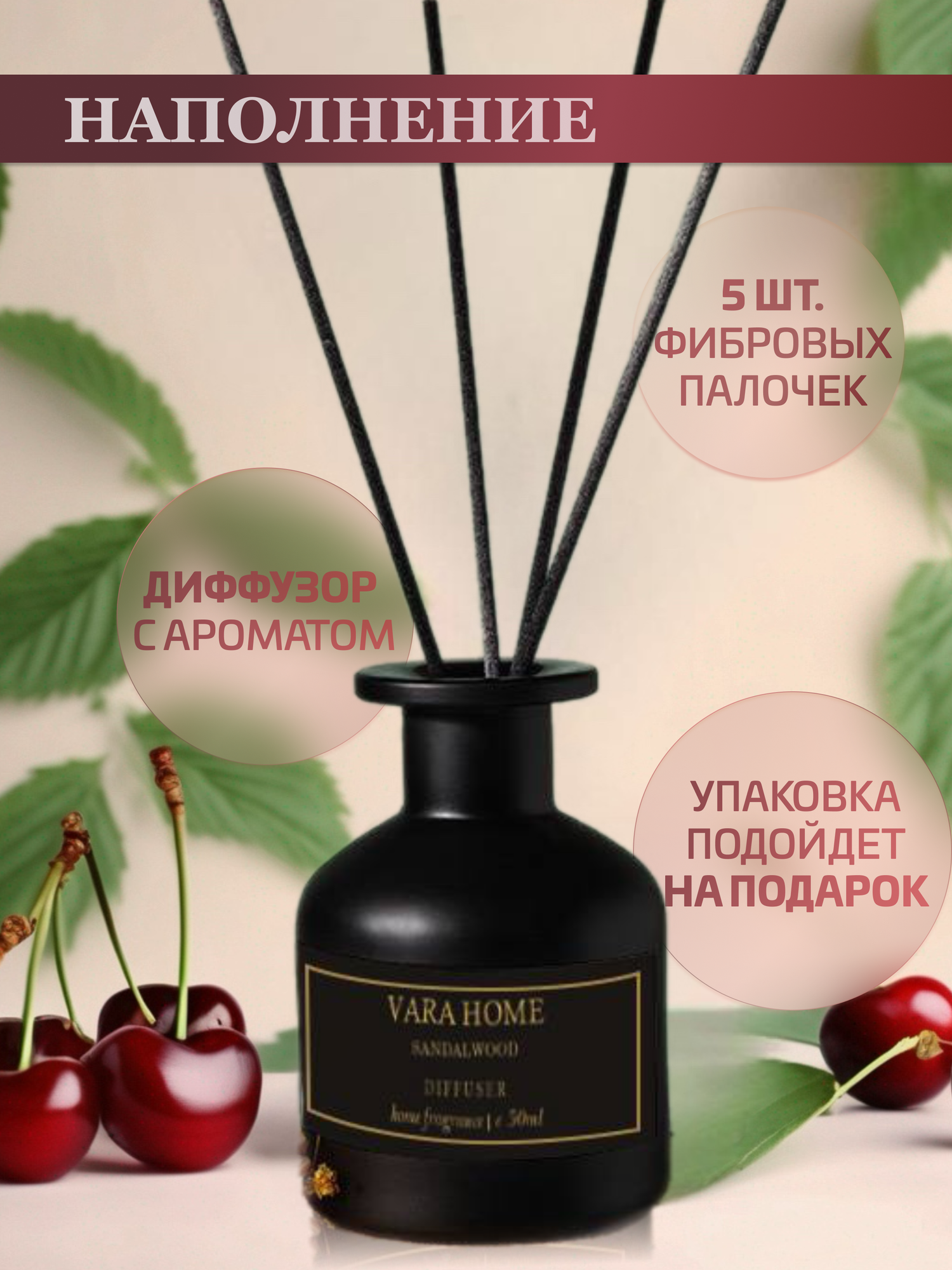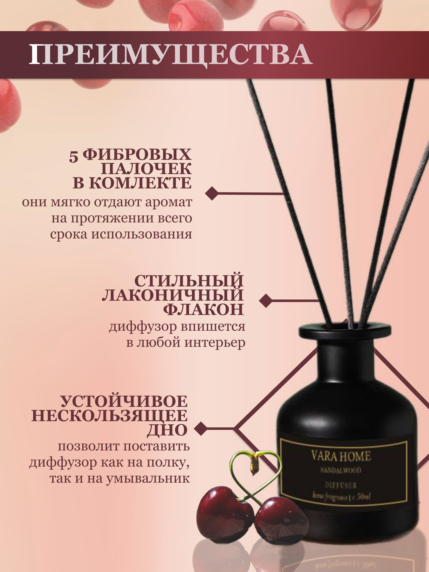 Ароматизатор для дома парфюм, диффузор с палочками, Вишня 50 мл интересное: