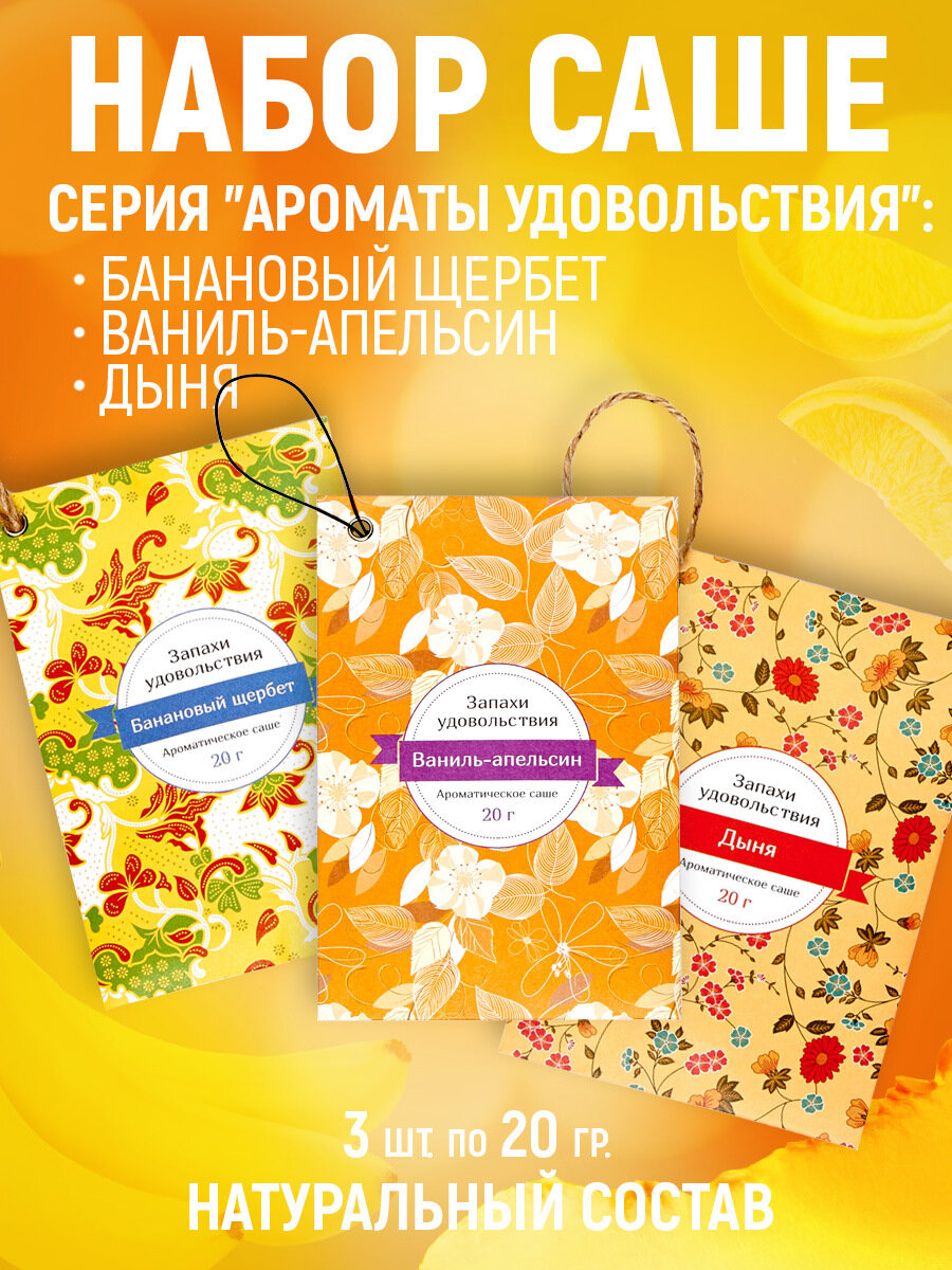 Ароматическое саше"Индокитай"(набор из 3 шт): Ваниль-Апельсин, Дыня, Банановый щербет