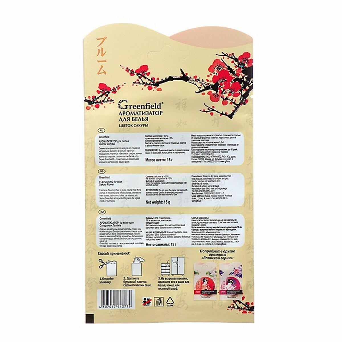 Ароматизатор-освежитель (3 шт) Greenfield Японская серия для белья, Цветок сакуры, Япония, 15 г