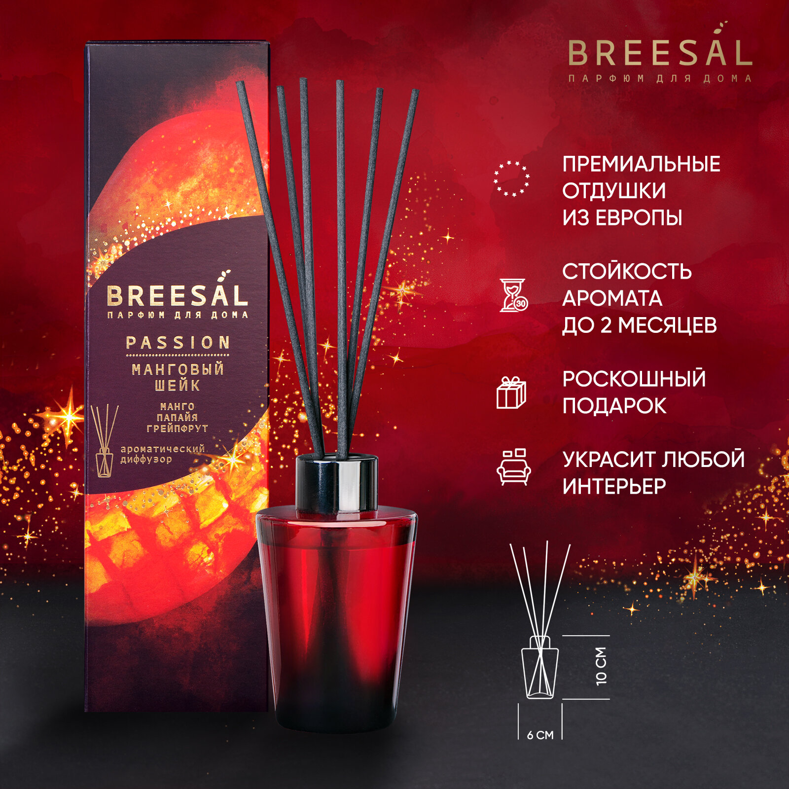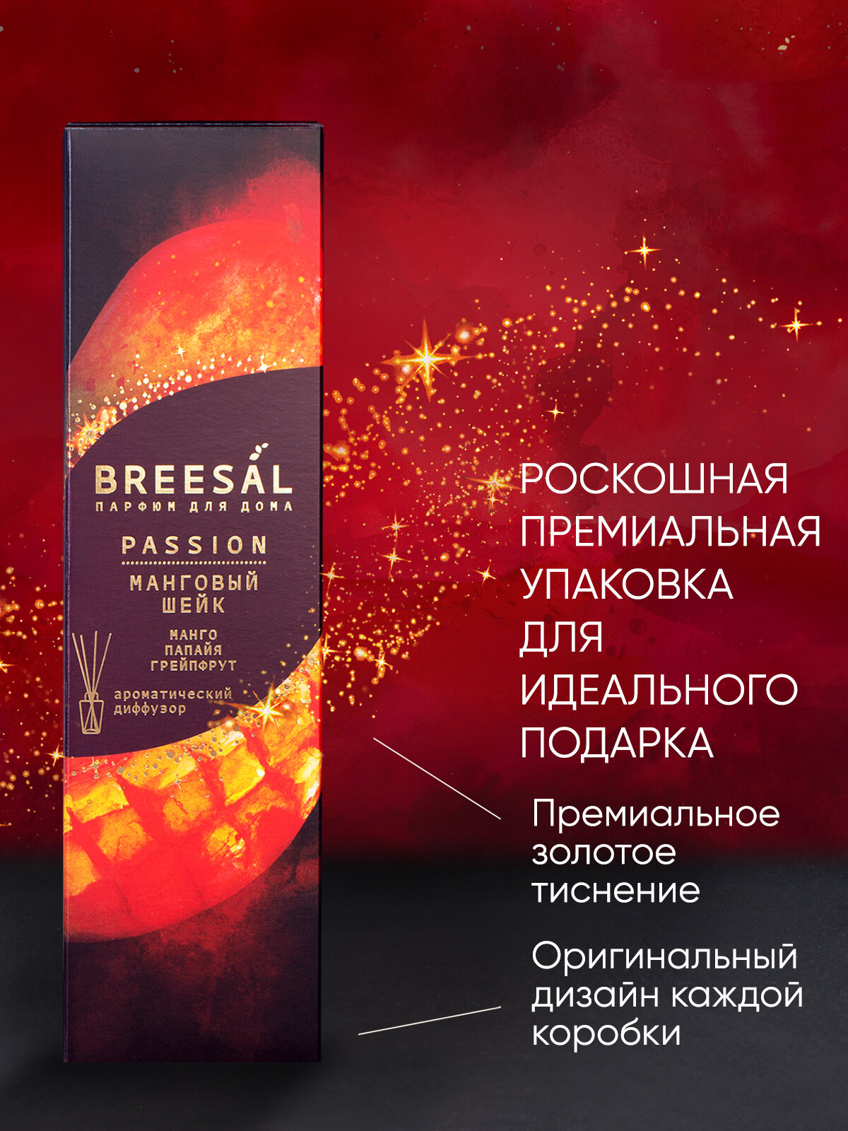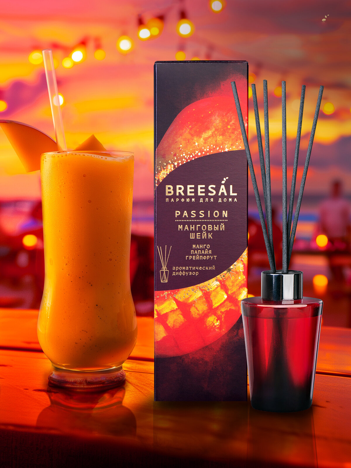 Диффузор для дома с палочками Breesal Passion ароматический диффузор Манговый шейк, 70 мл