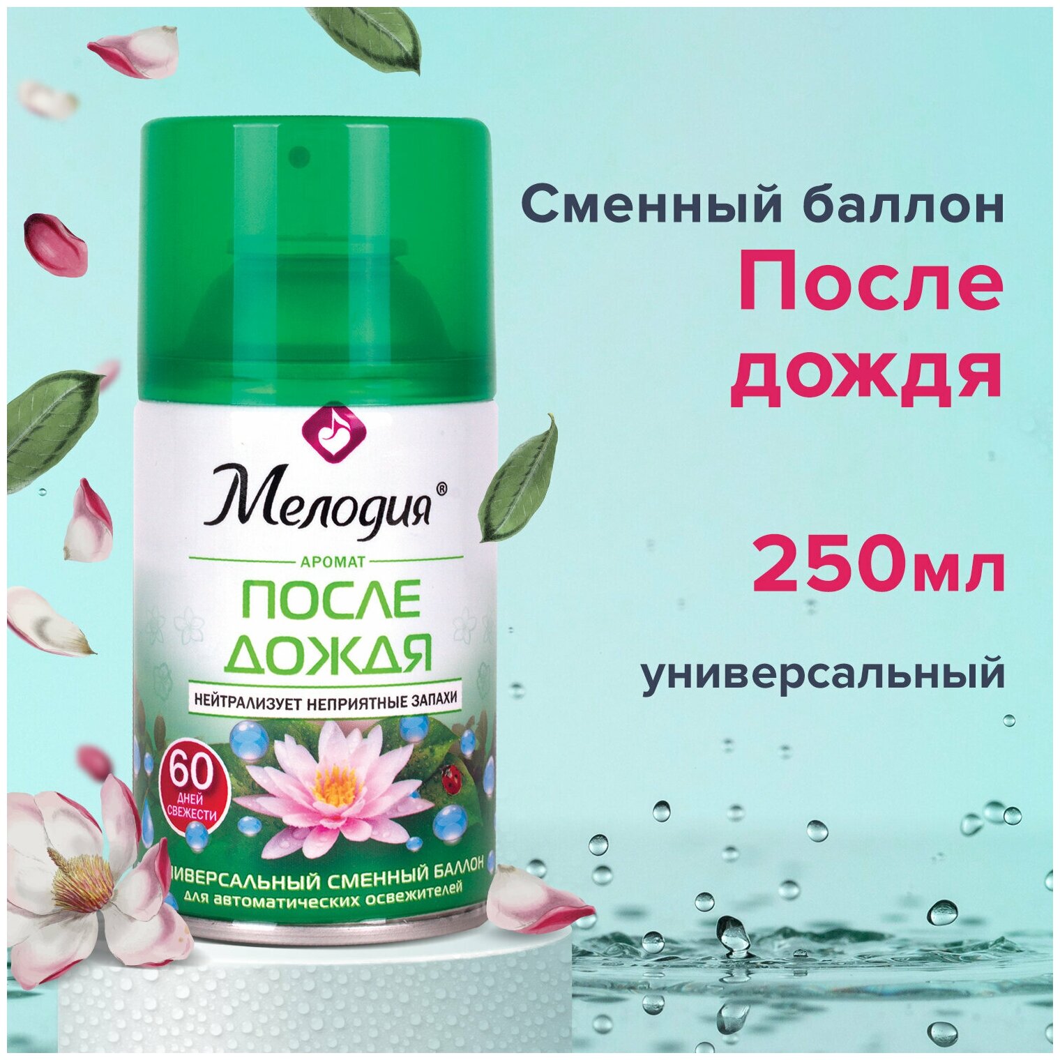 Купить Освежитель воздуха автоматический сменный / запасной баллон 250 мл Мелодия После дождя, для автоматических освежителей, универсальный, 605227