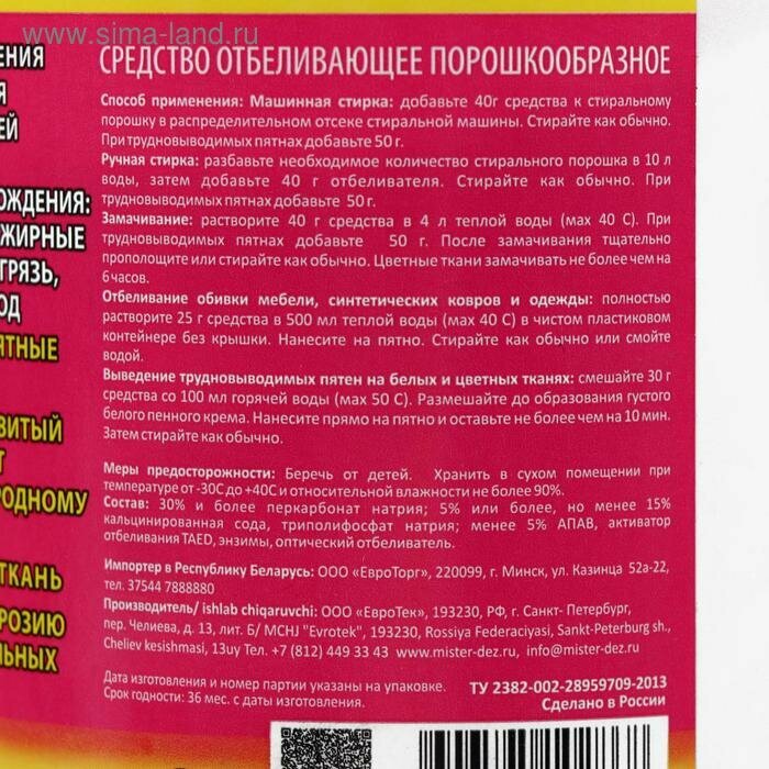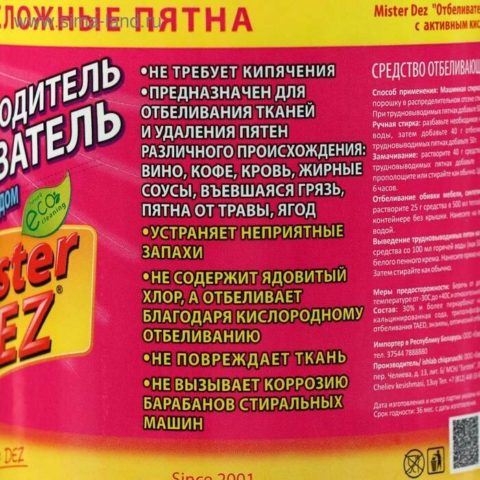Отбеливатель-пятновыводитель Mister Dez Eco-Cleaning 1кг интересное: