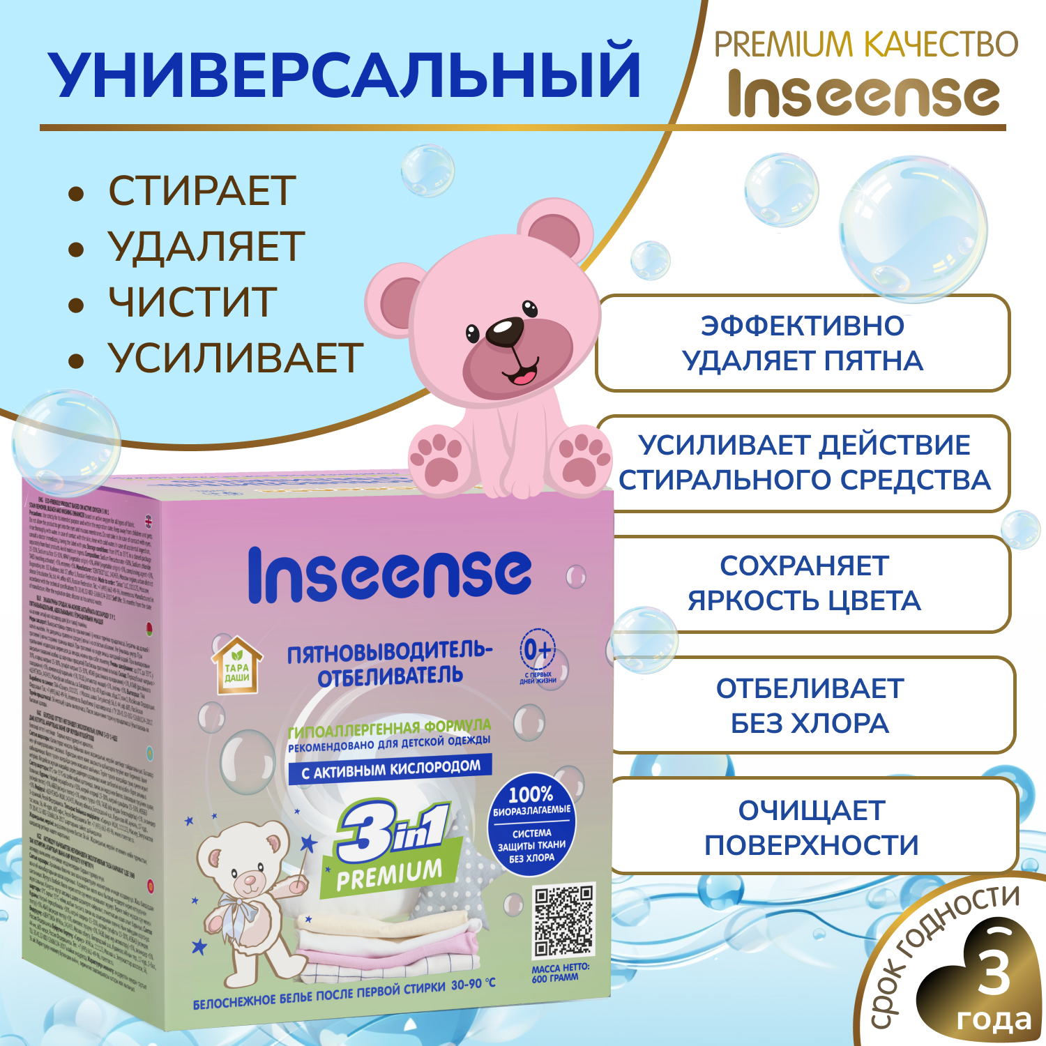 Купить Пятновыводитель Inseense тара даши отбеливатель для детской одежды, 600 гр