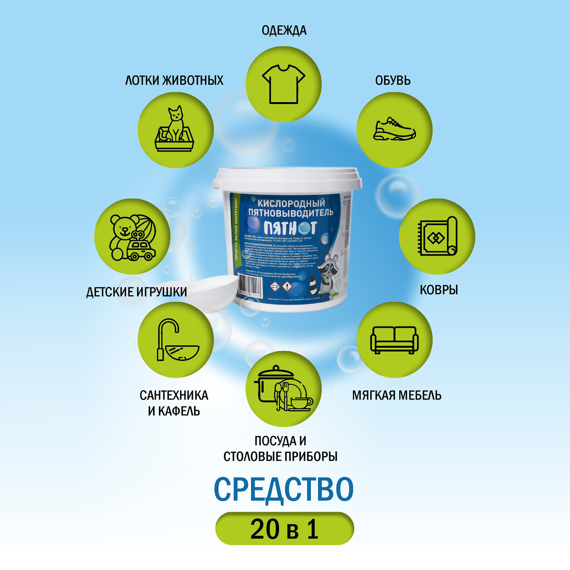 Кислородный отбеливатель пятновыводитель Енот Пятнот 1 кг для белого и цветного белья, очиститель универсальный интересное:
