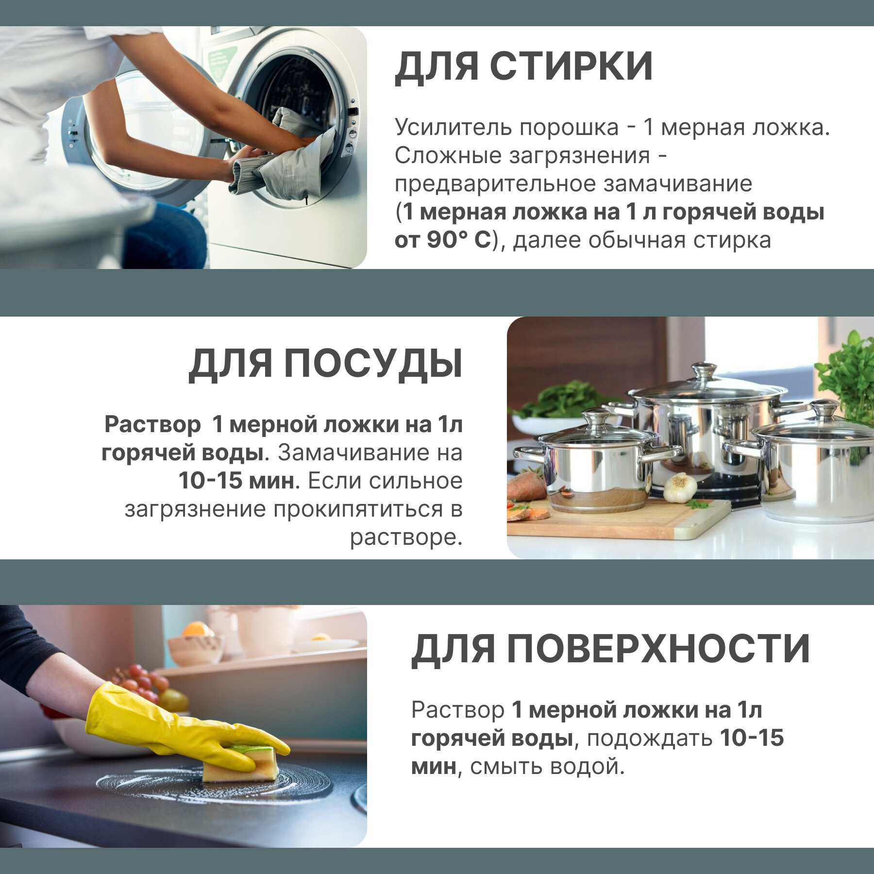 | Дополнительная информация | Использовать перчатки и средства защиты глаз. Хранить отдельно от пищевых продуктов, в местах, недоступных для детей и животных. Избегать попадания в глаза, рот и на кожу. В случае попадания обильно промыть водой и обратиться за медицинской помощью. При проглатывании немедленно обратиться за медицинской помощью и предъявить упаковку продукта. Не употреблять внутрь. Использовать строго по назначению. Не смешивать с другими средствами бытовой химии. |
