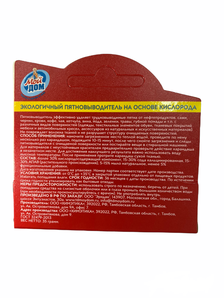 Карандаш пятновыводитель "Мой дом" интересное: