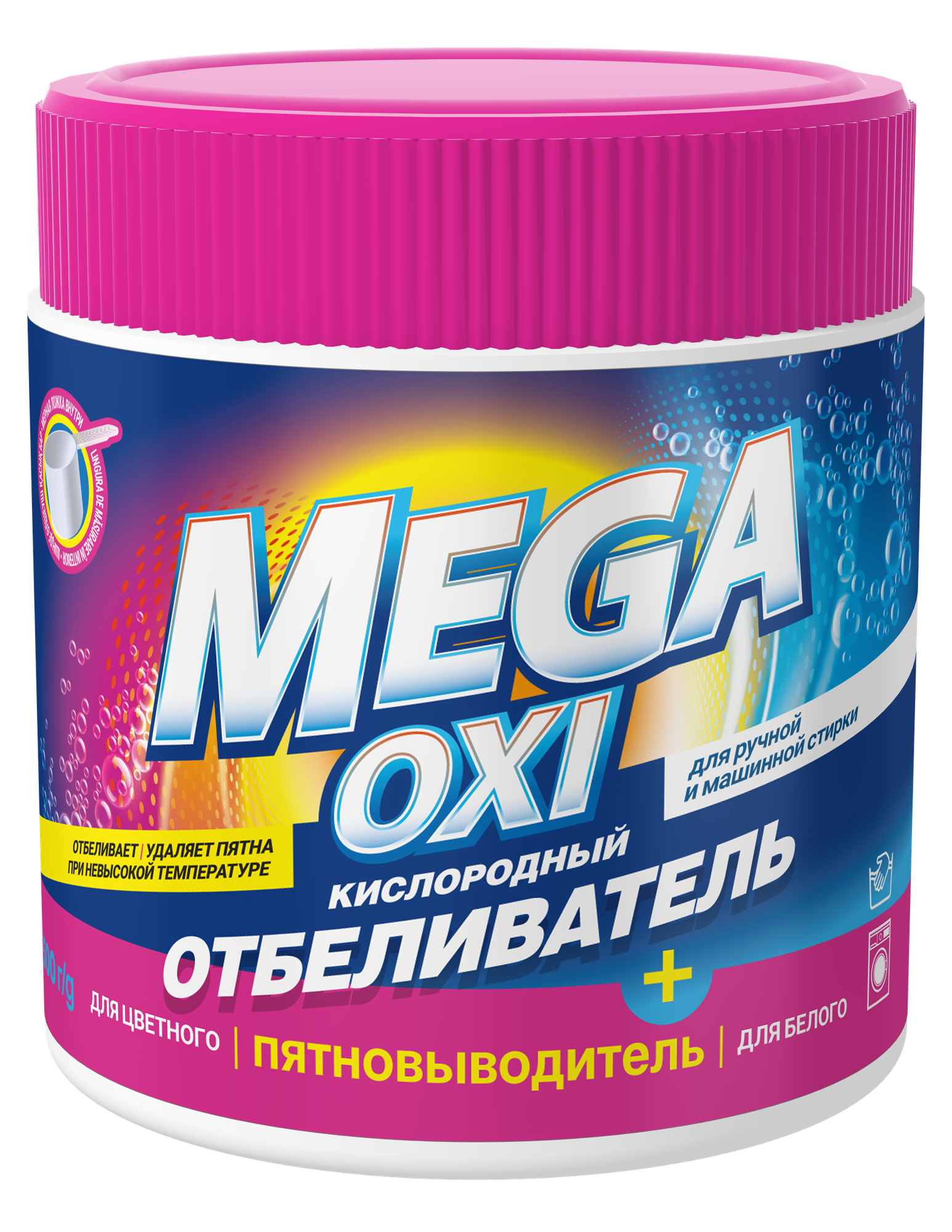 Кислородный отбеливатель плюс пятновыводитель для белых и цветных тканей MEGA OXI 500 г, в банке интересное: