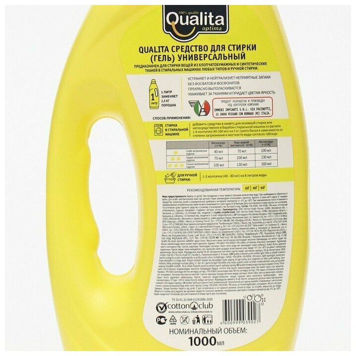 Купить Гель для стирки Qualita универсальный, 1 л, бутылка
