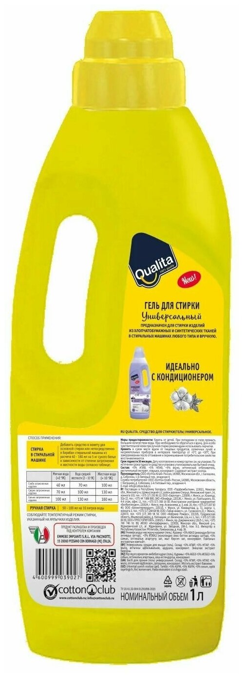 Qualita Гель для стирки концентрат универсальный, 1000мл/