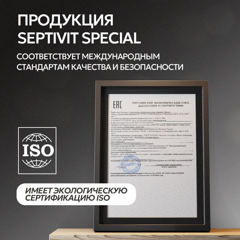 Гель для стирки Septivit Special Amber Neroli, парфюмированный, 1 л