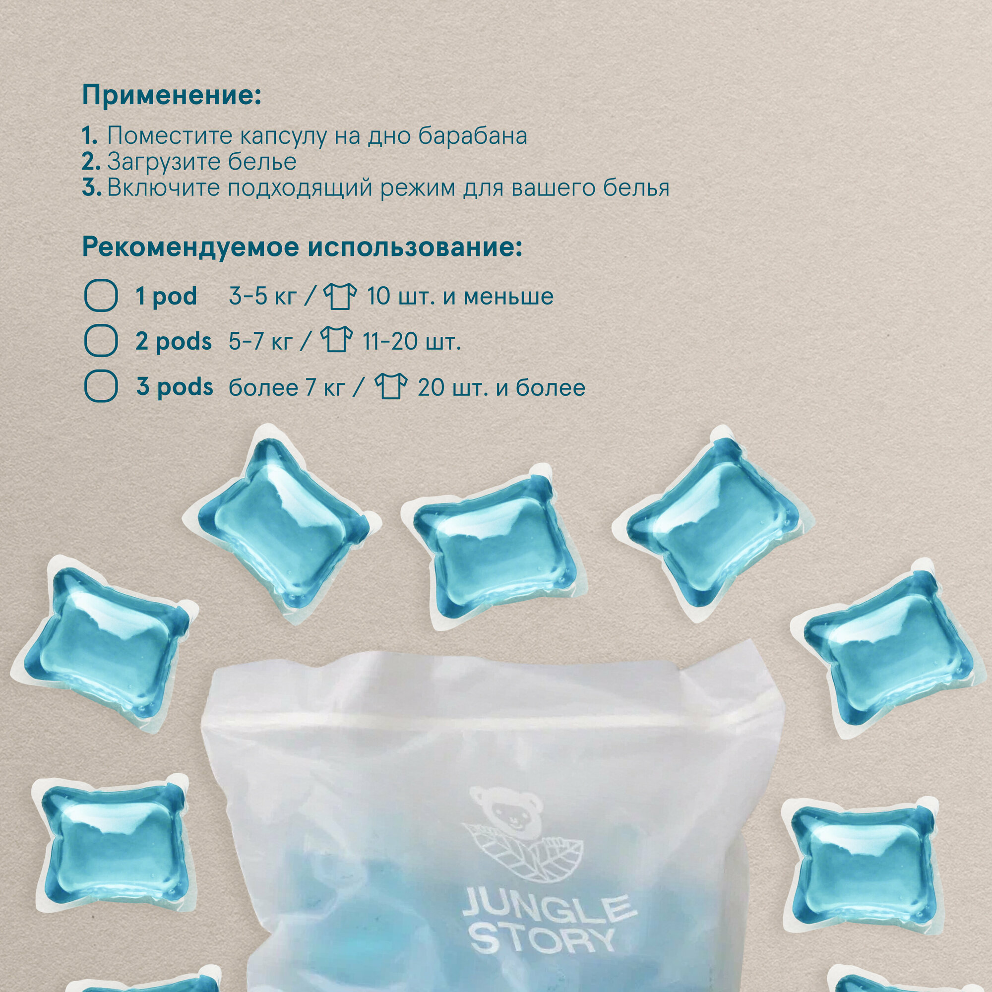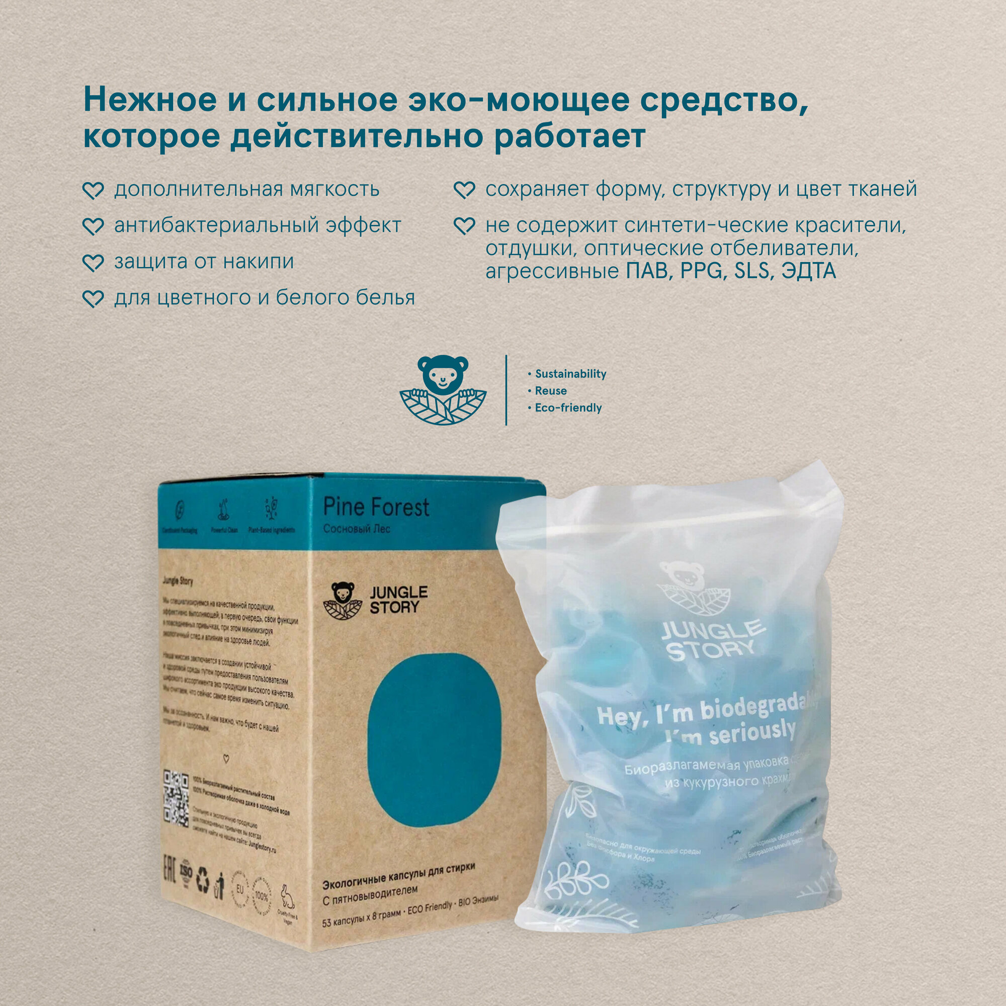Капсулы для машинной стирки "Jungle Story" Сосновый Лес 53шт интересное: