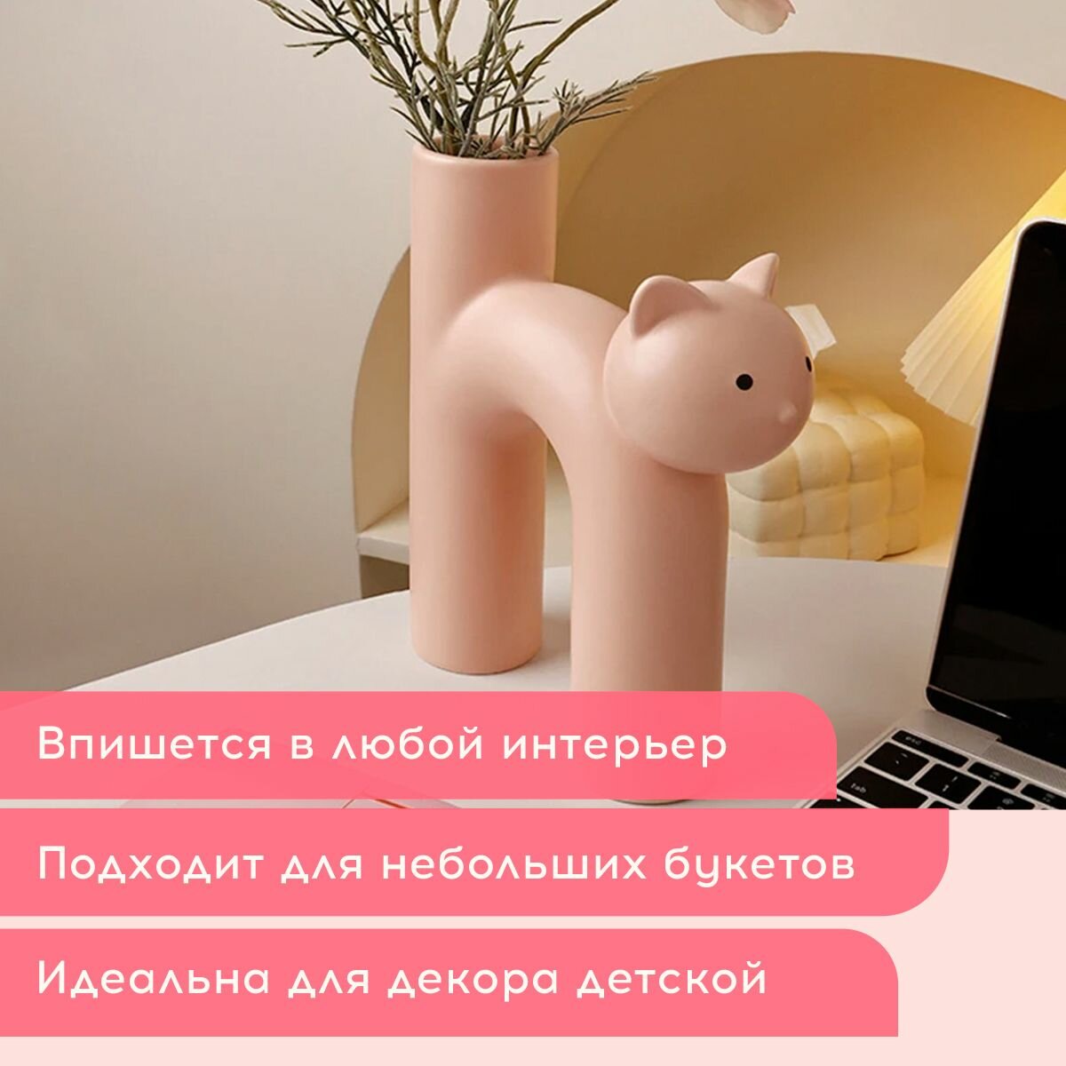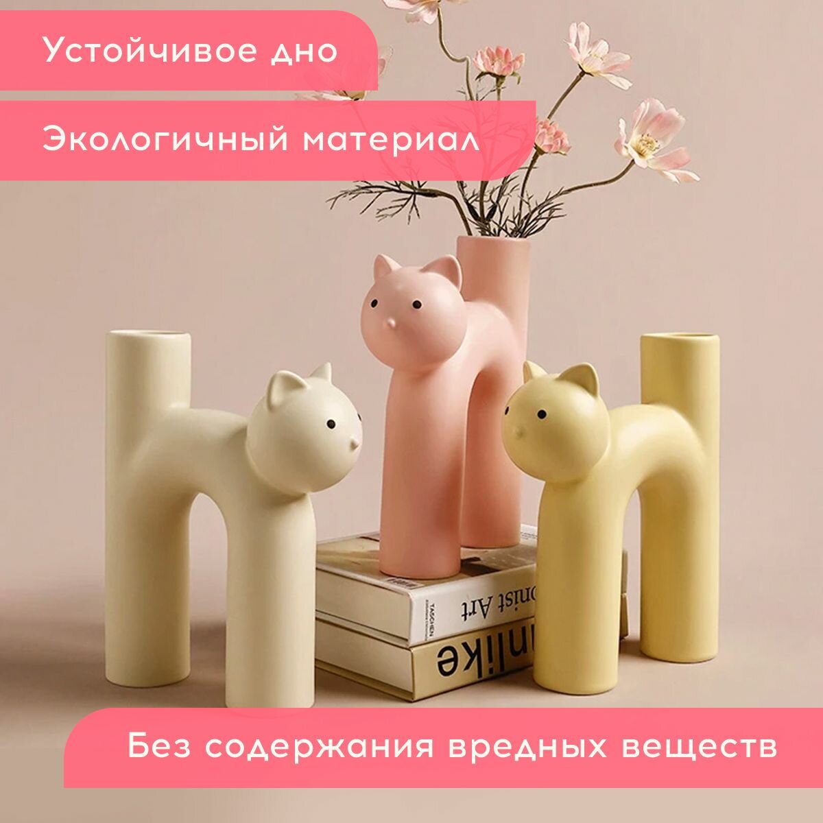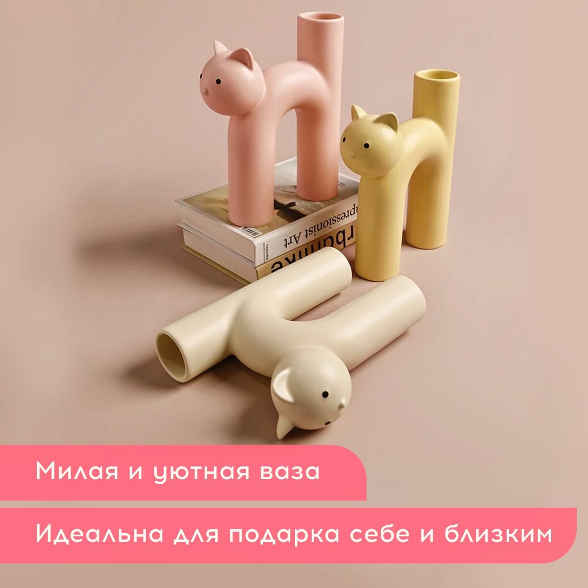 Ваза Conflate декоративная, керамическая для цветов и сухоцветов в форме кошки, бежевая