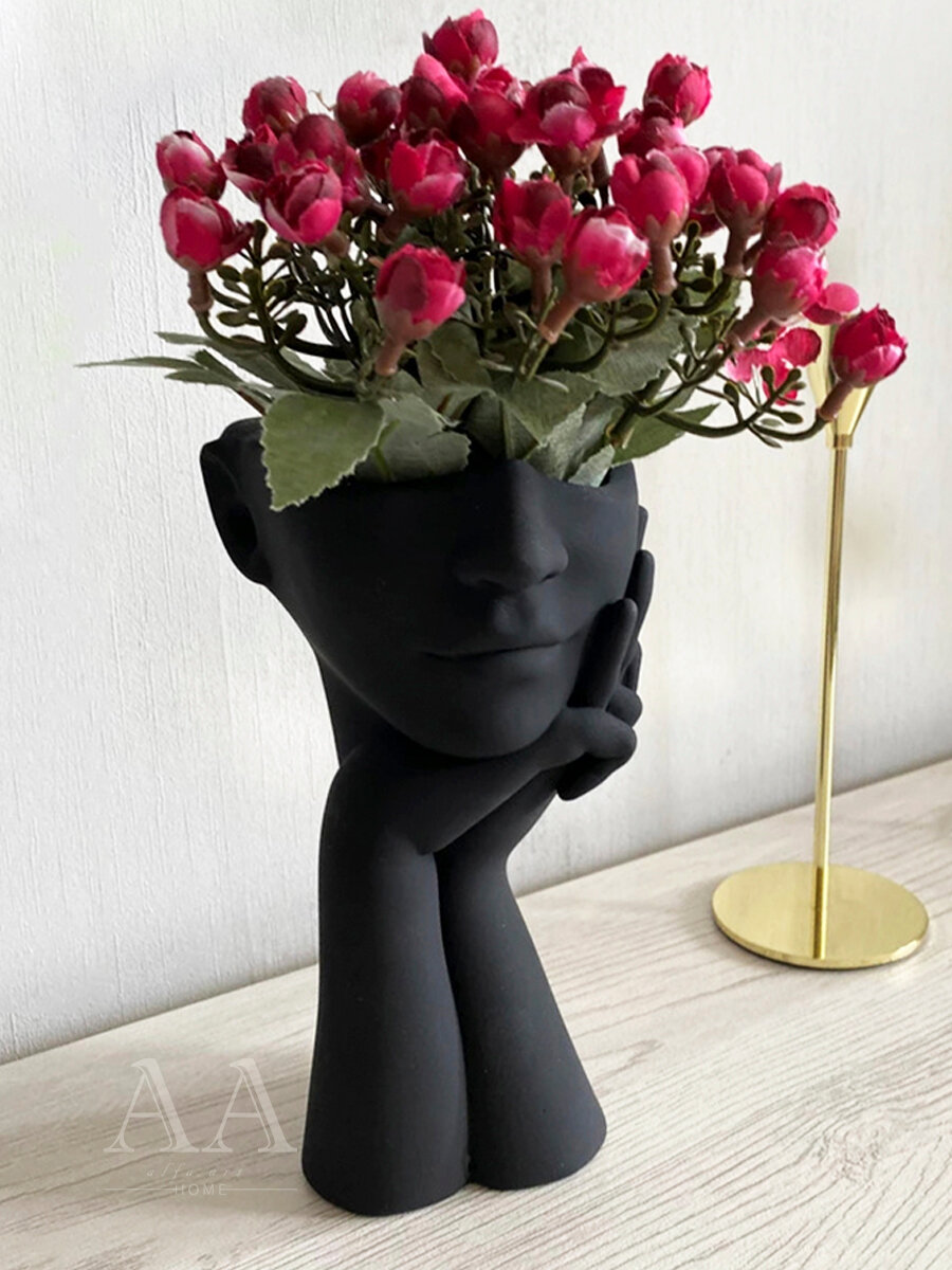 Купить Ваза для сухоцветов декоративная для декора интерьера Девушка с руками из гипса черная