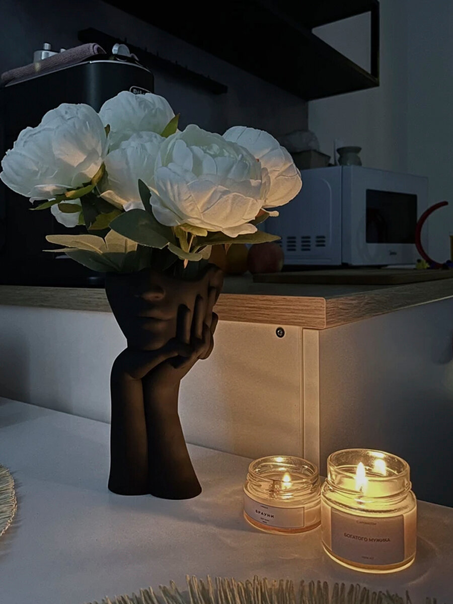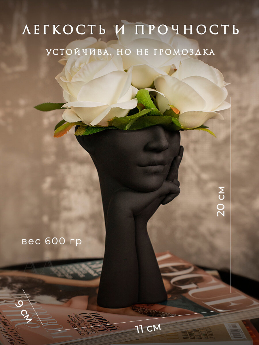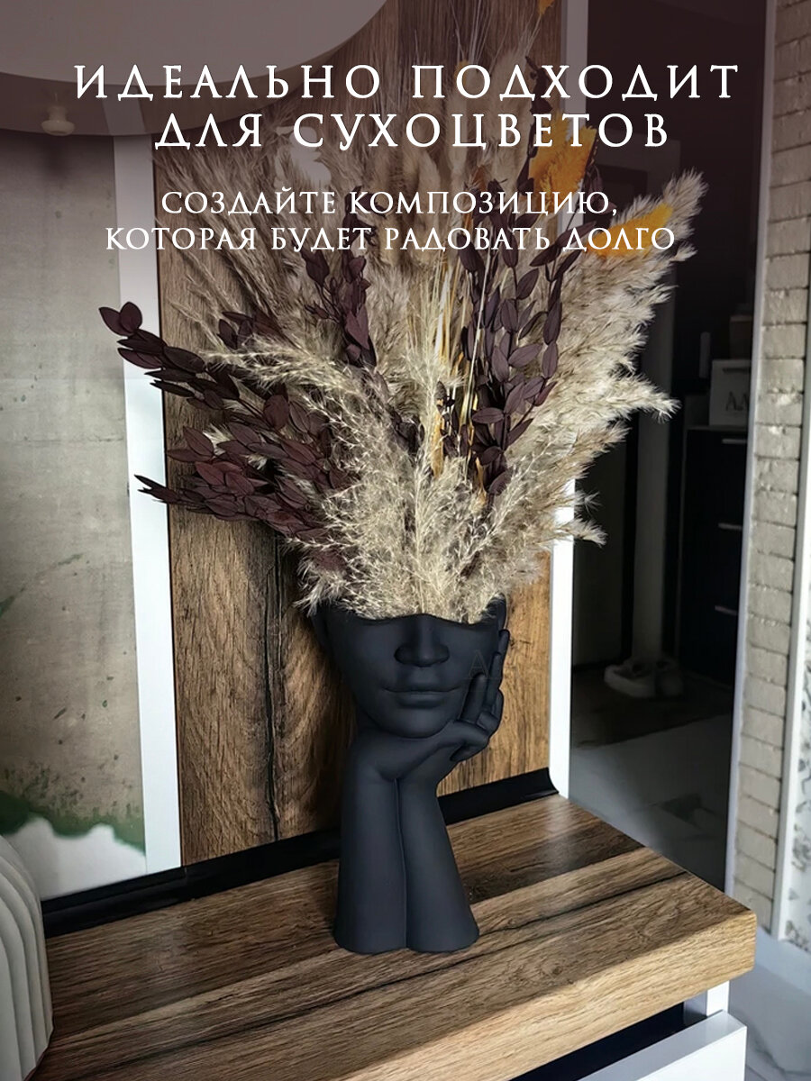СохранитьВаза для сухоцветов декоративная для декора интерьера Девушка с руками из гипса черная интересное:
