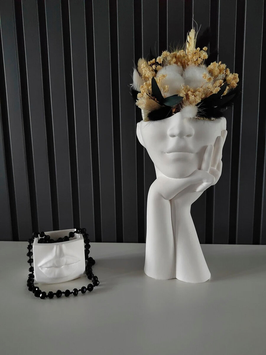 Ваза для сухоцветов декоративная для декора интерьера Девушка с руками из гипса черная