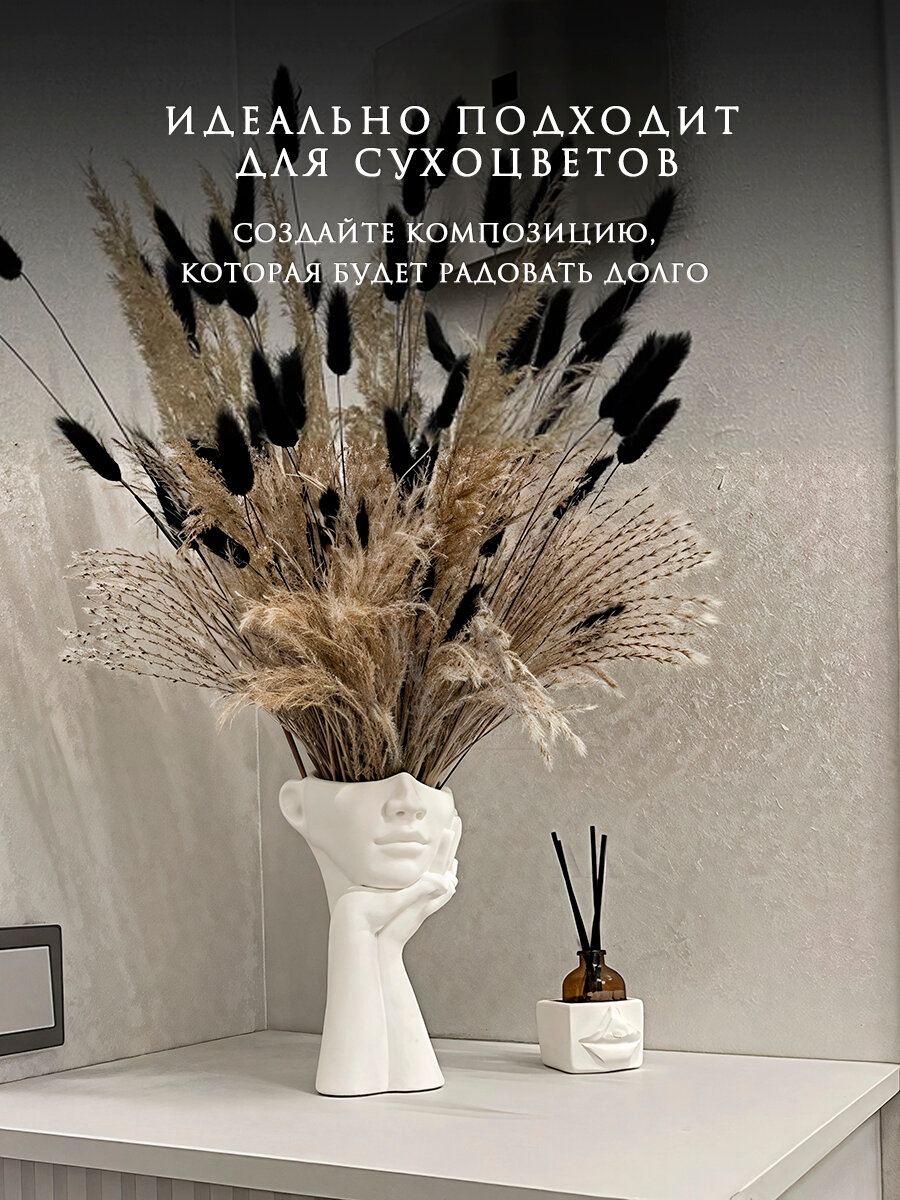 Ваза для цветов сухоцветов "Милота" из гипса, белая, настольная, 20х11х6 см, ALFA-ART