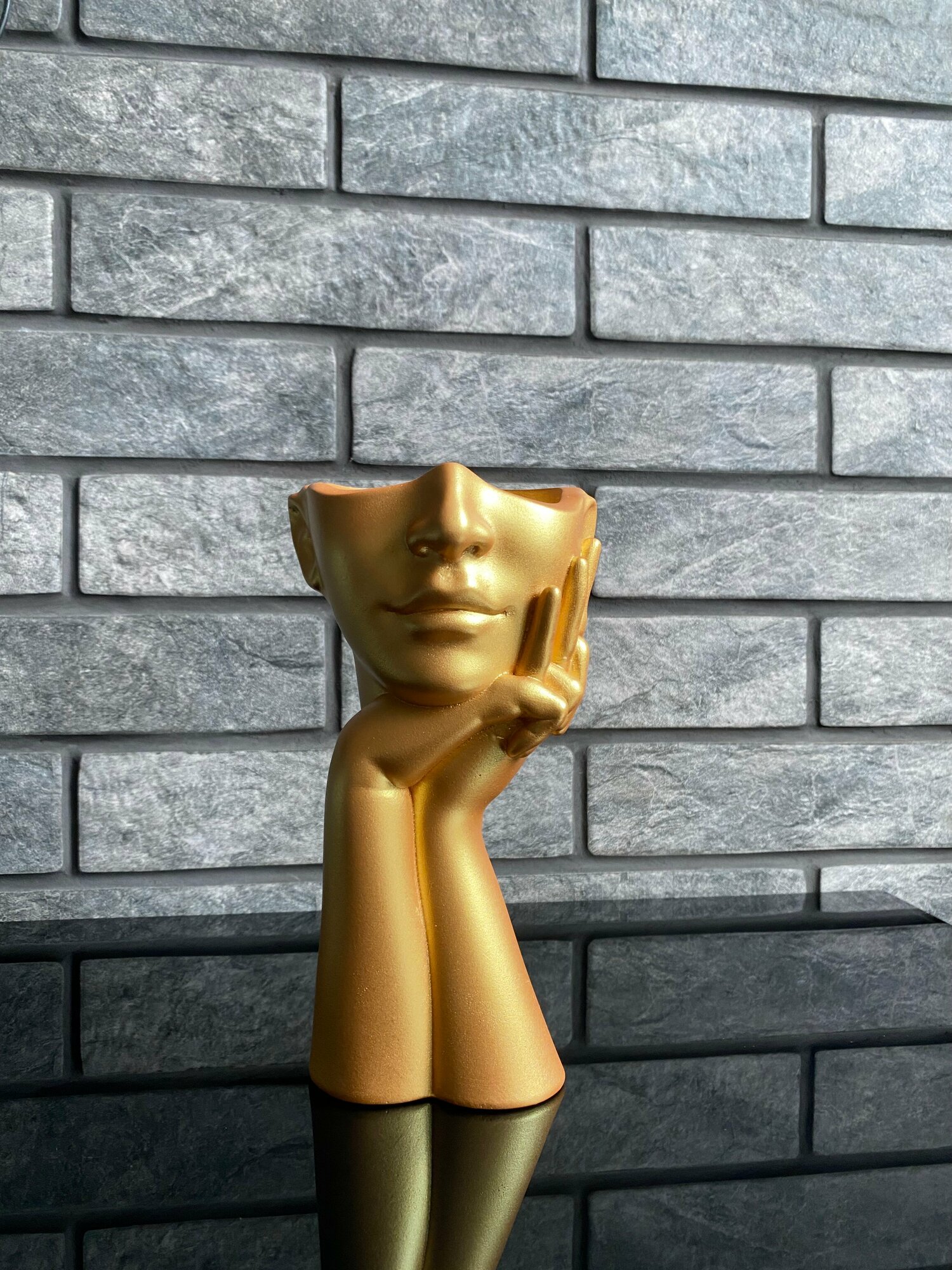 Купить Ваза для сухоцветов декоративная для декора интерьера Девушка с руками из гипса золотая