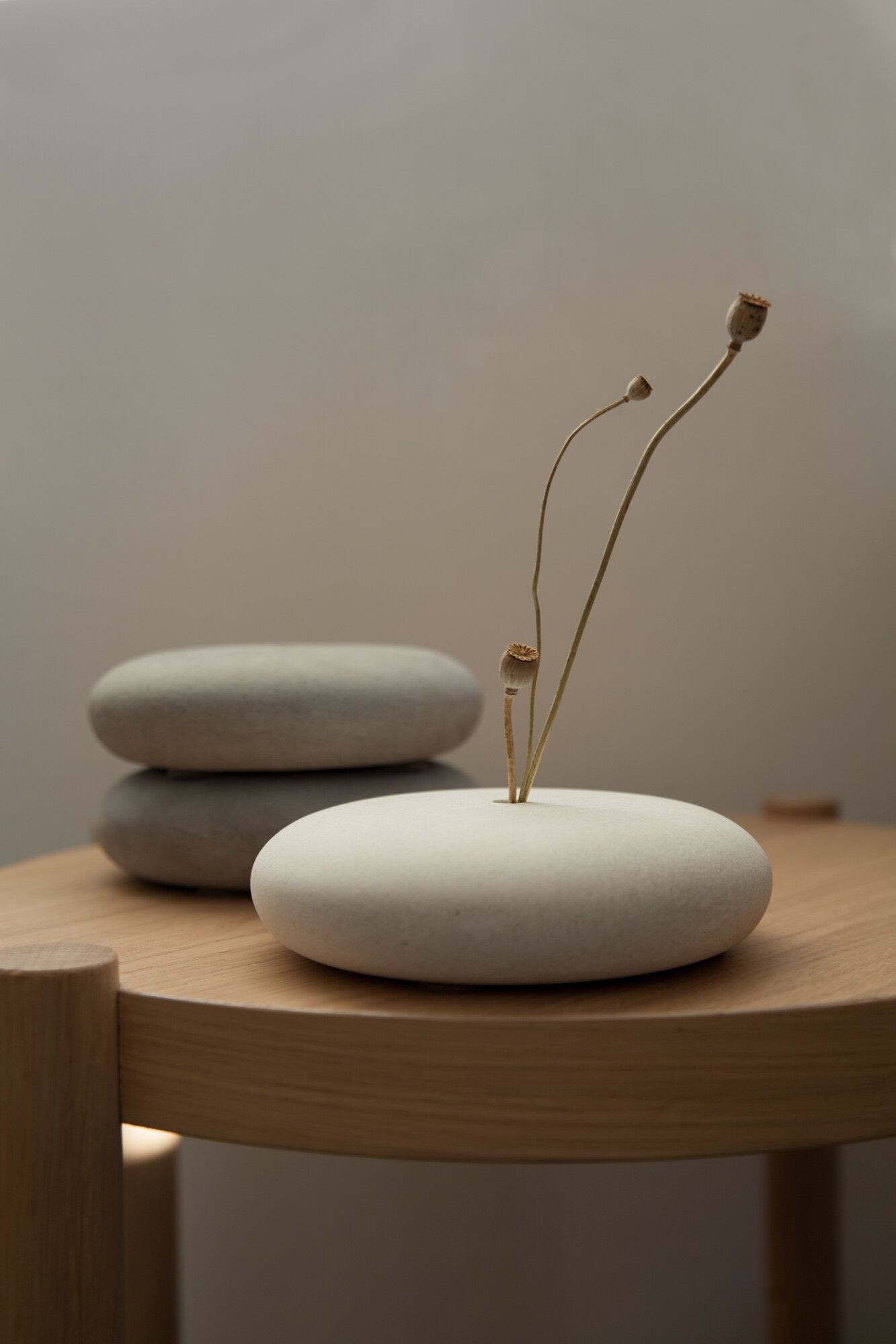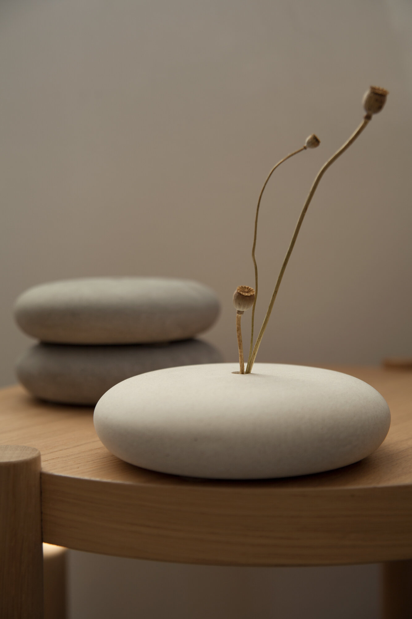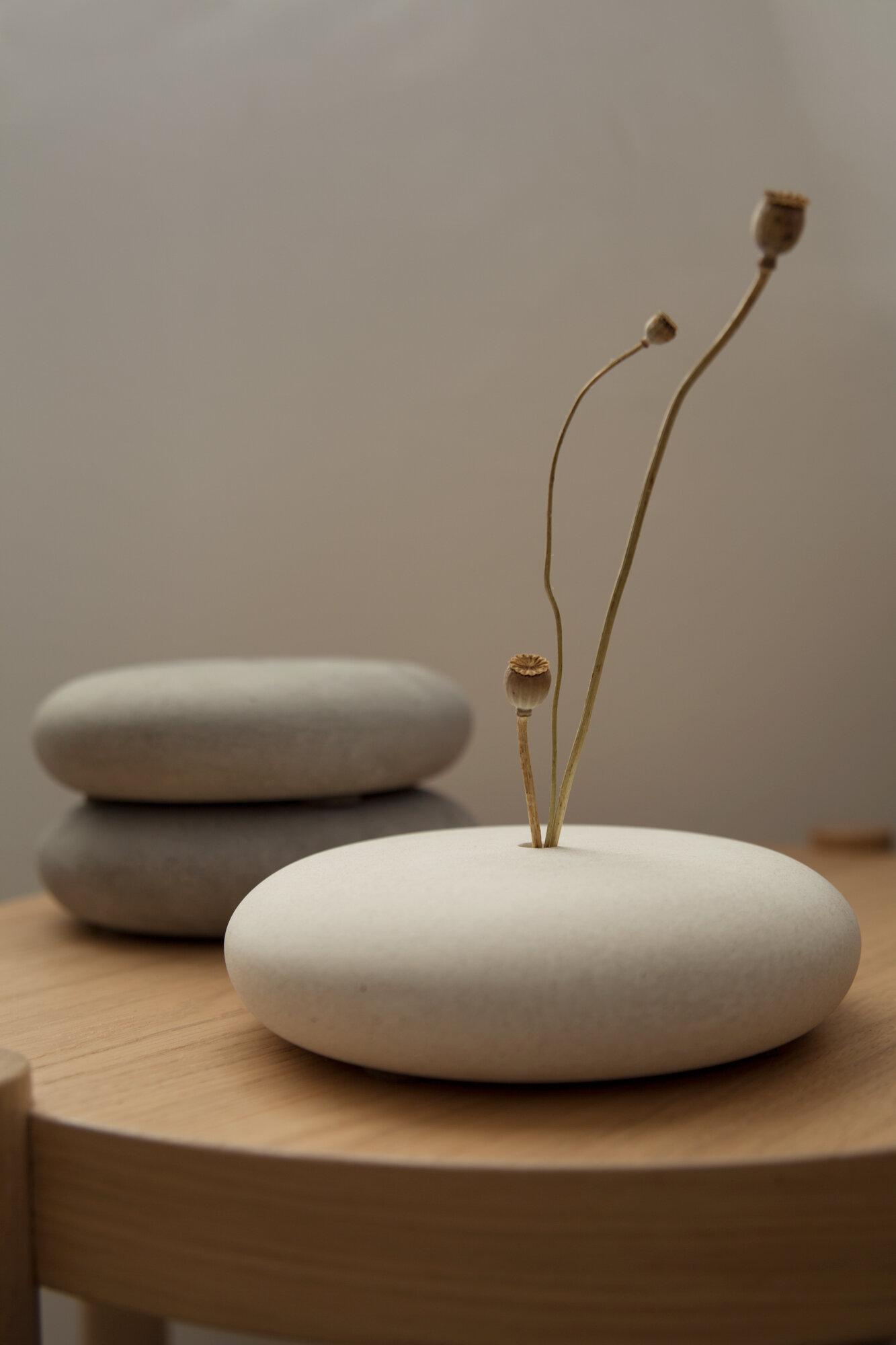 Купить Ваза из бетона минималистичная "Орикит" белая D 16 см для сухоцветов