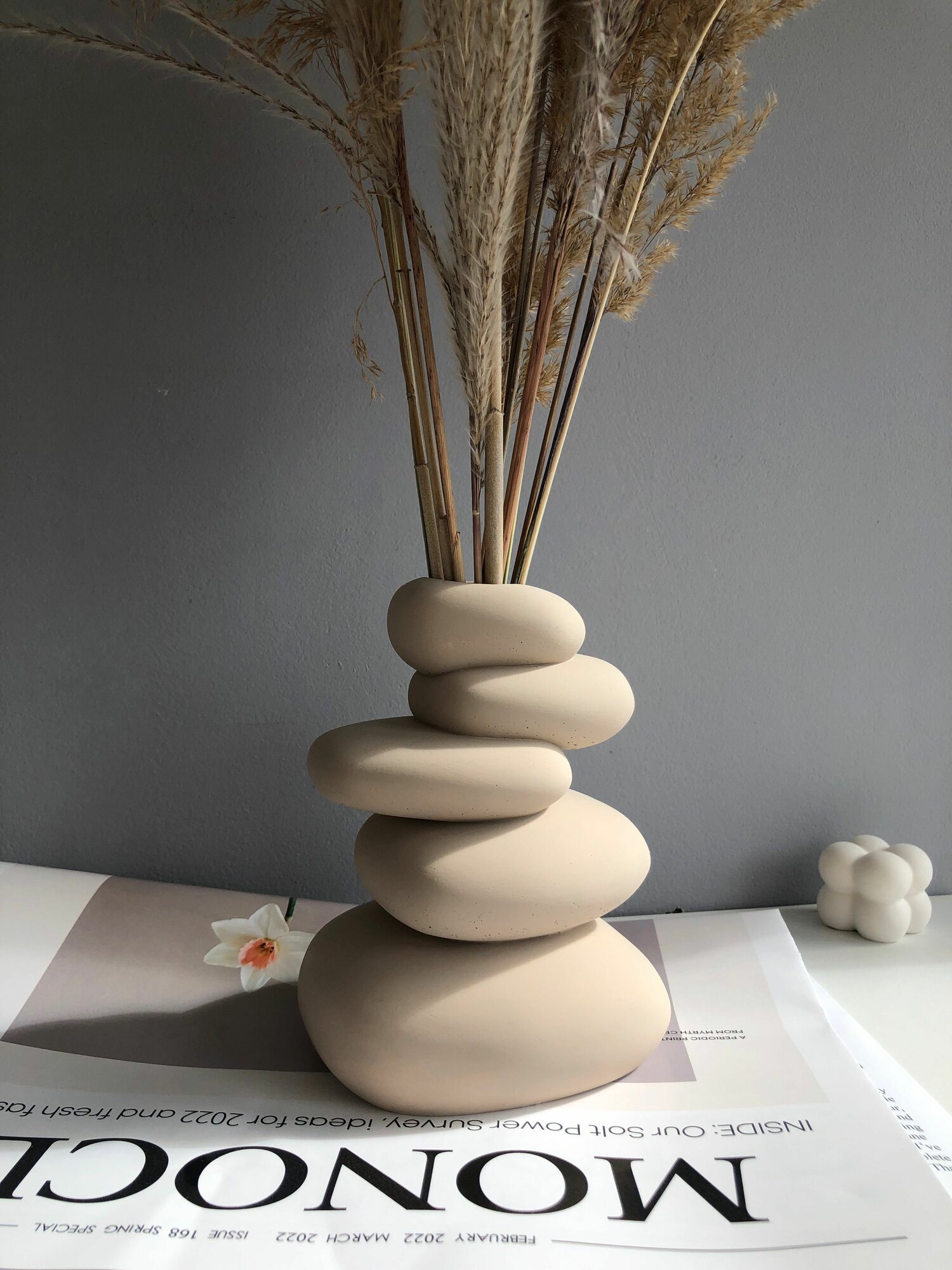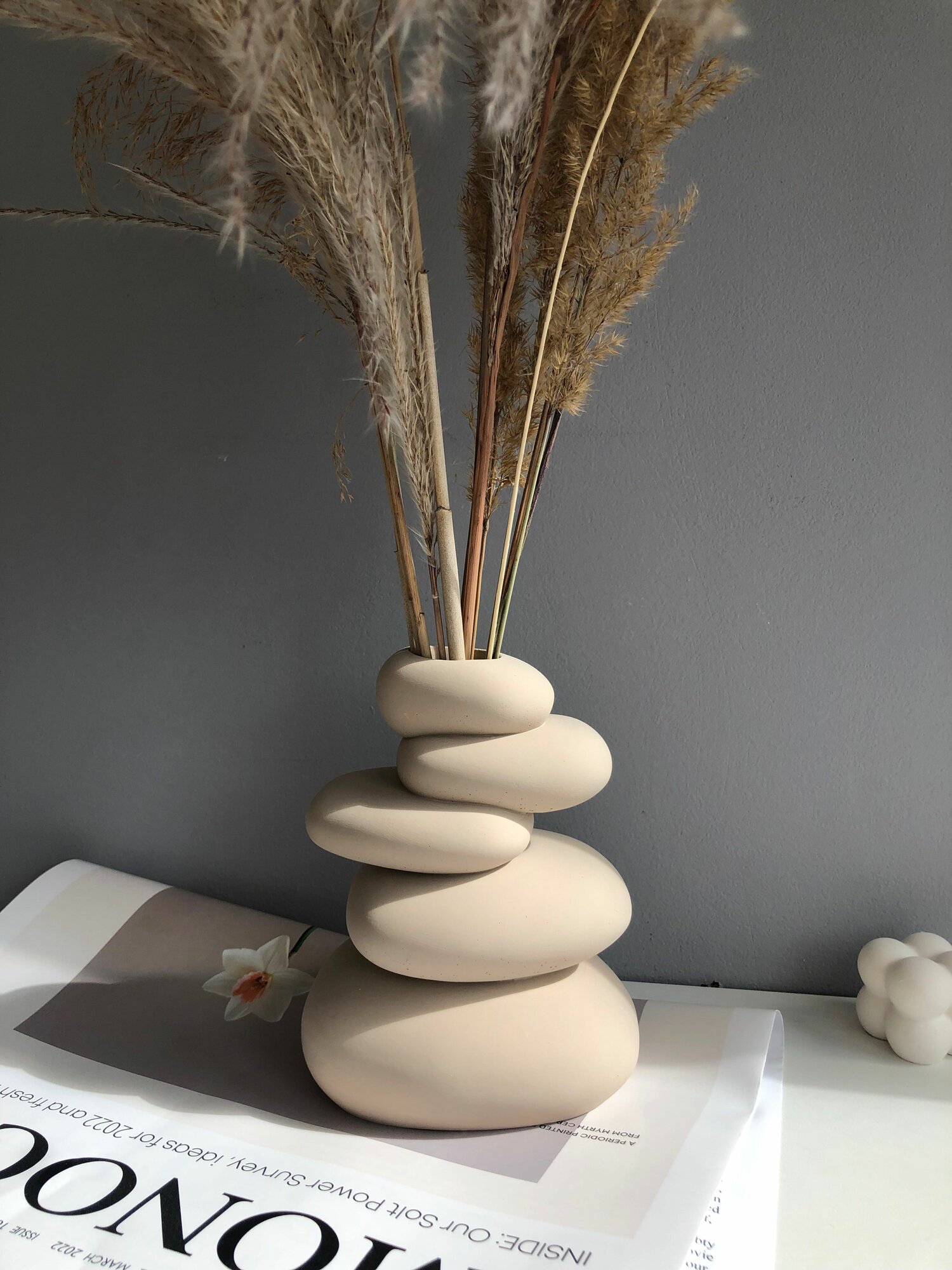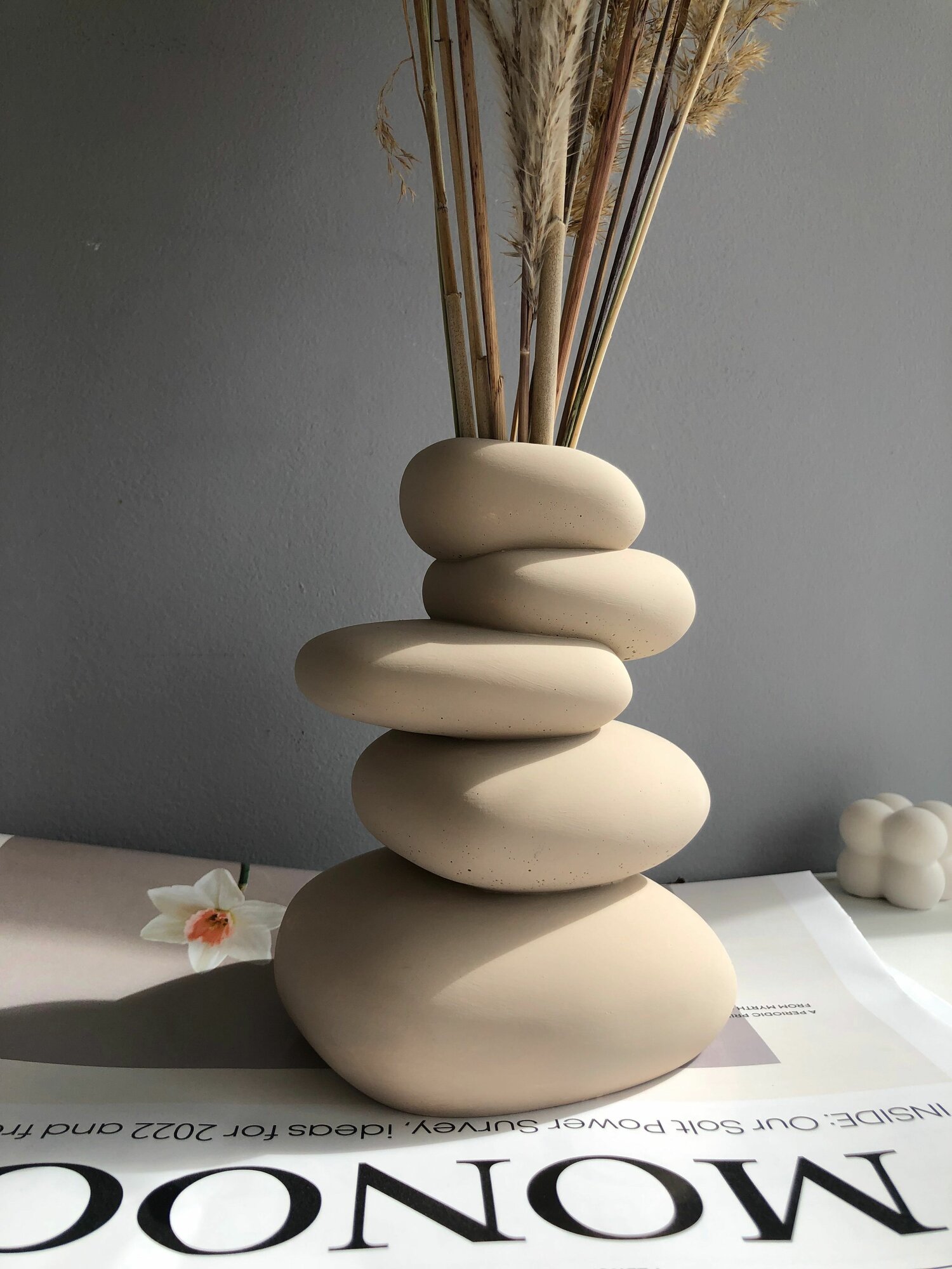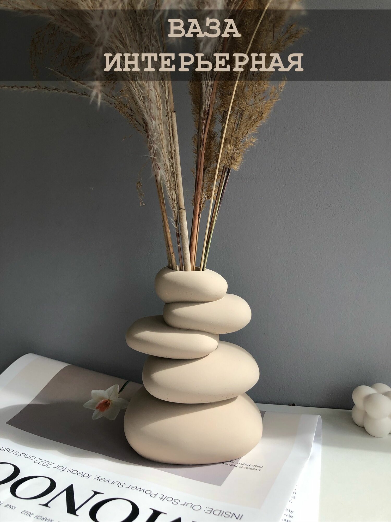Ваза бежевая в виде камней для декора 15 см интересное: