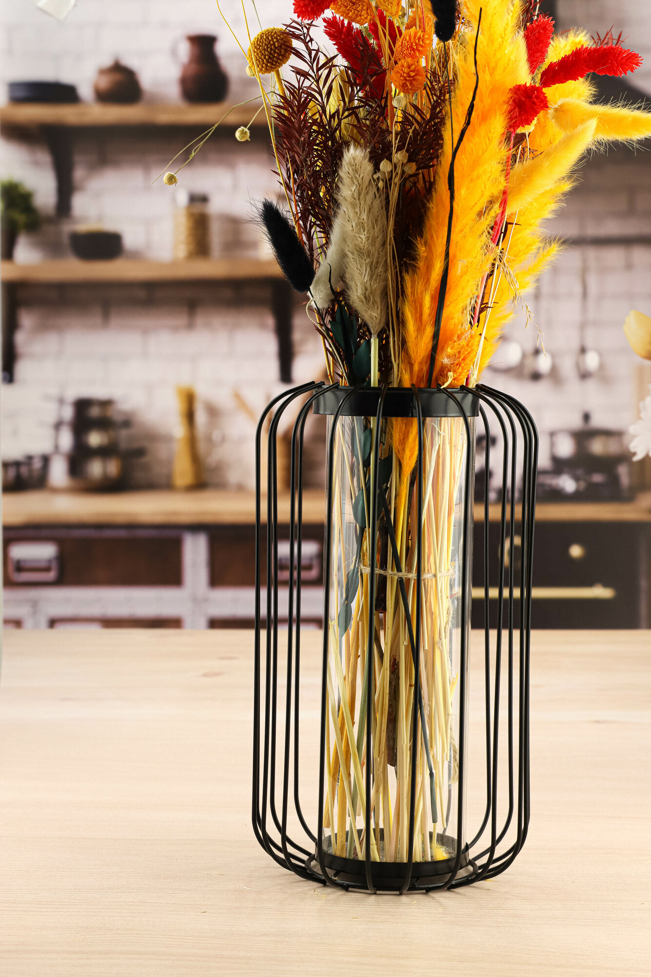 Ваза корзина искусственных цветов и сухоцветов декоративная металл