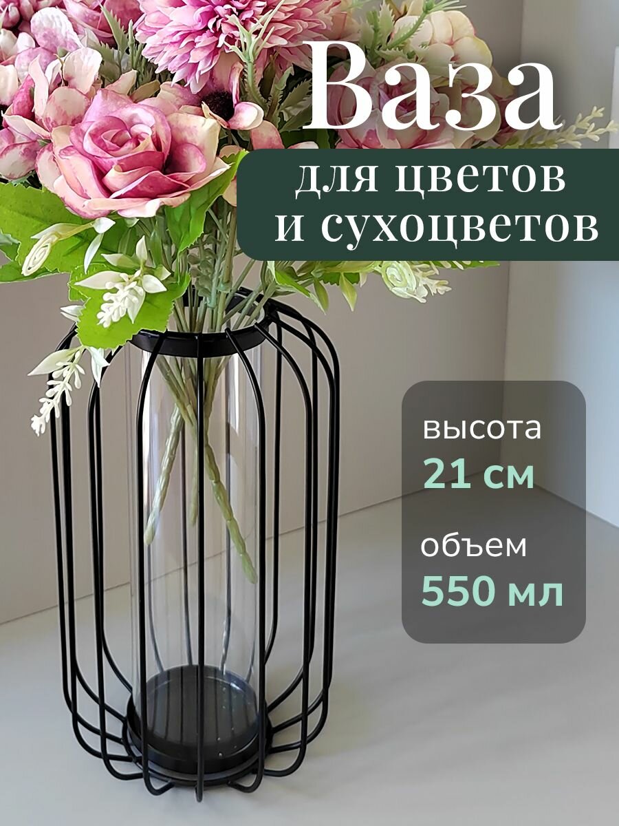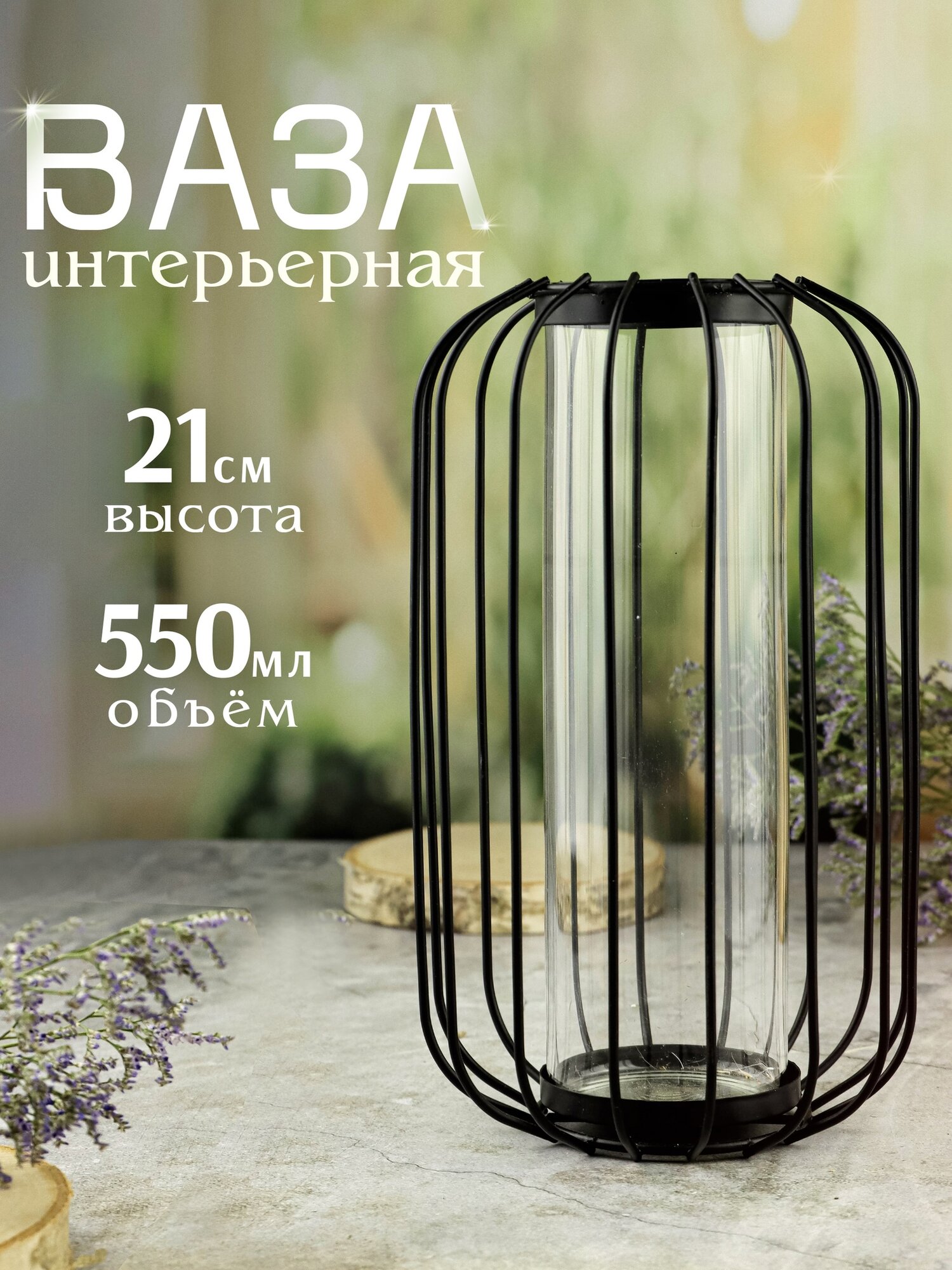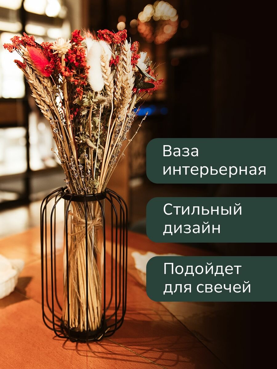 Купить Ваза для цветов сухоцветов стеклянная декоративная высокая
