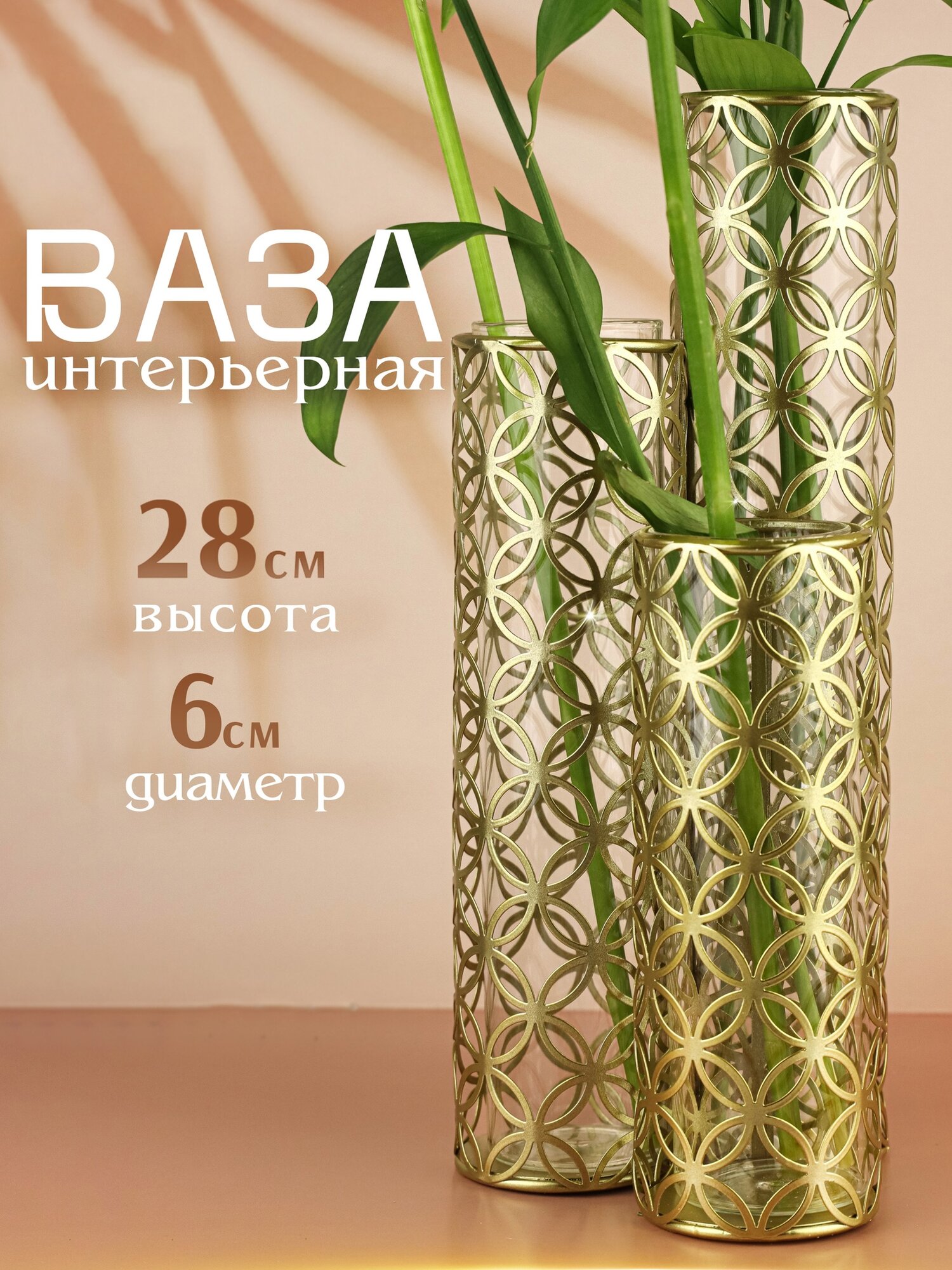 Ваза для цветов сухоцветов стеклянная декоративная высокая