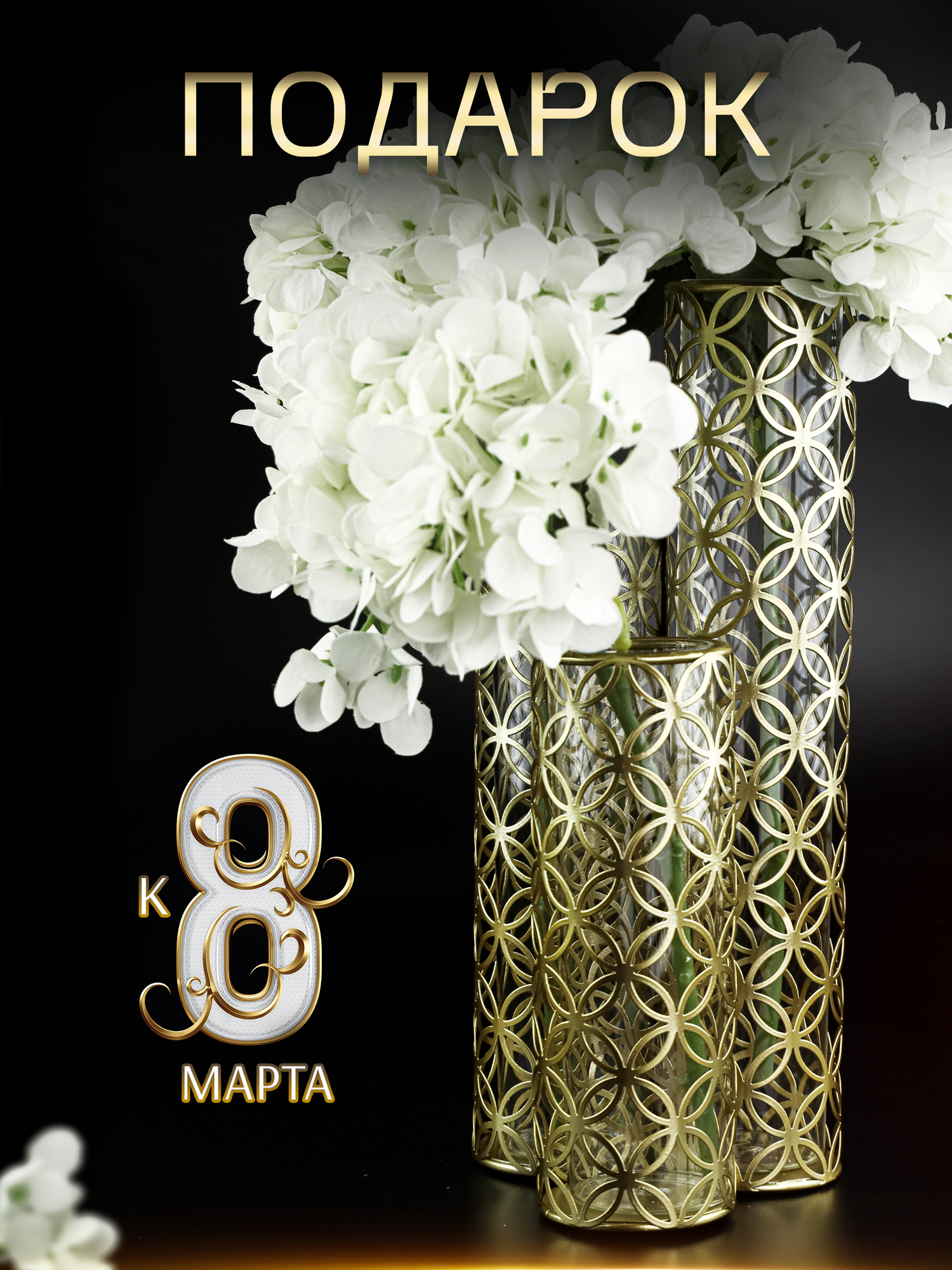Ваза корзина искусственных цветов и сухоцветов декоративная золотая круглая
