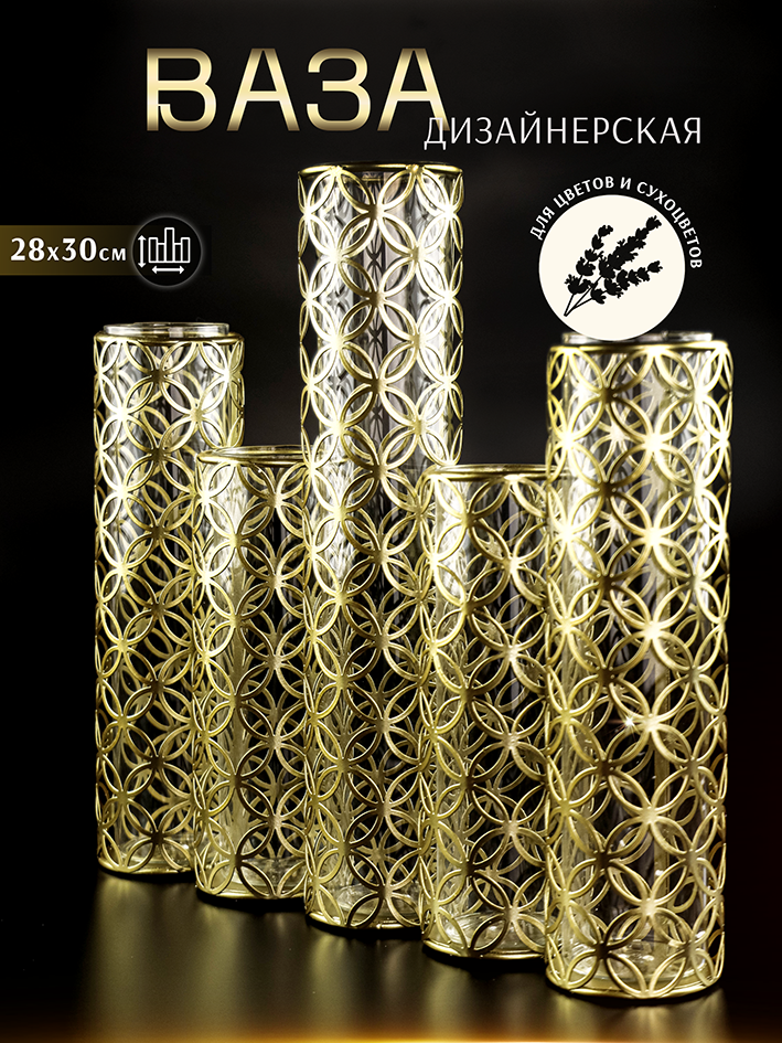 Ваза для цветов сухоцветов стеклянная декоративная высокая