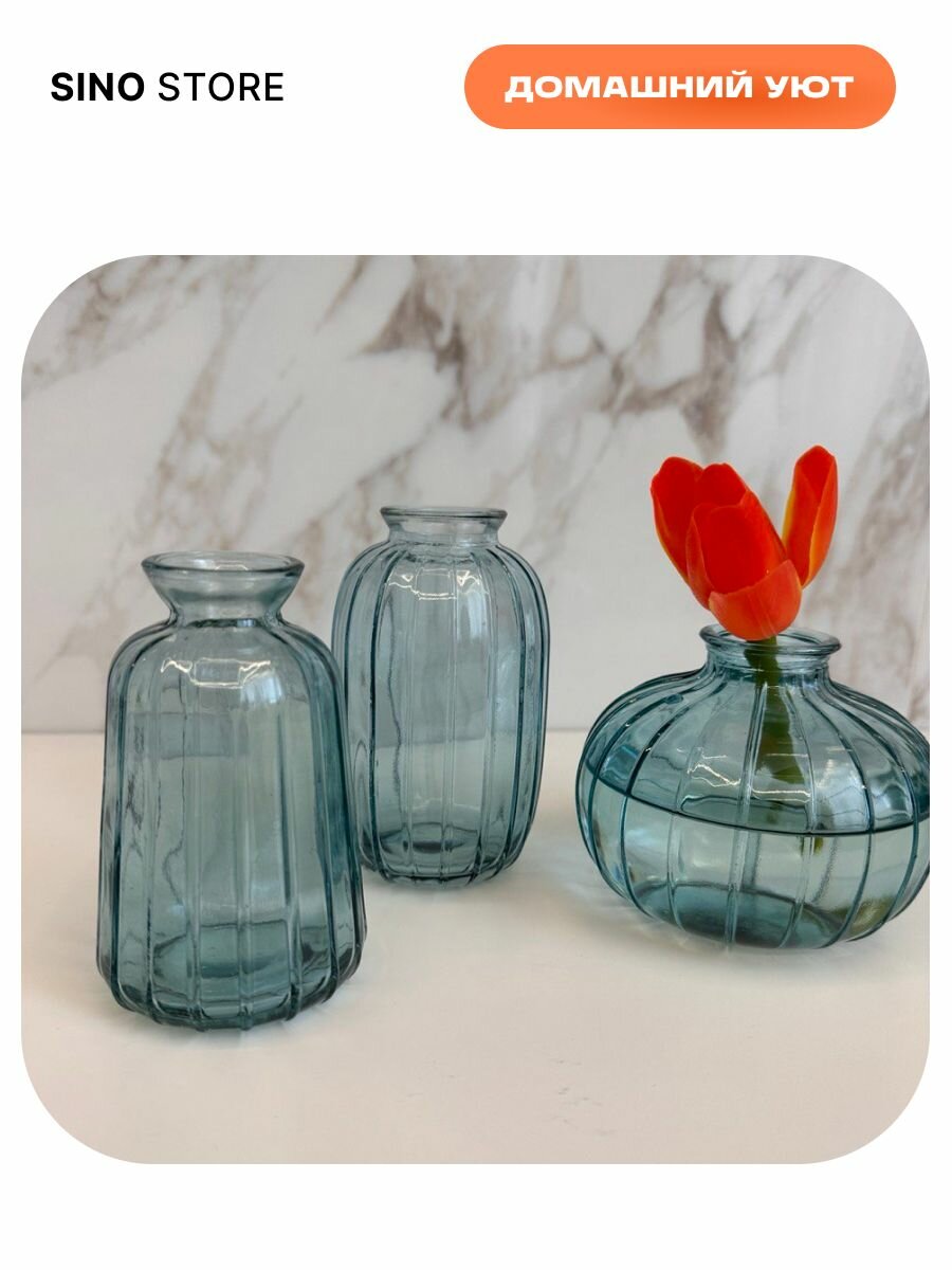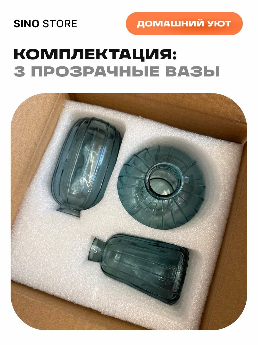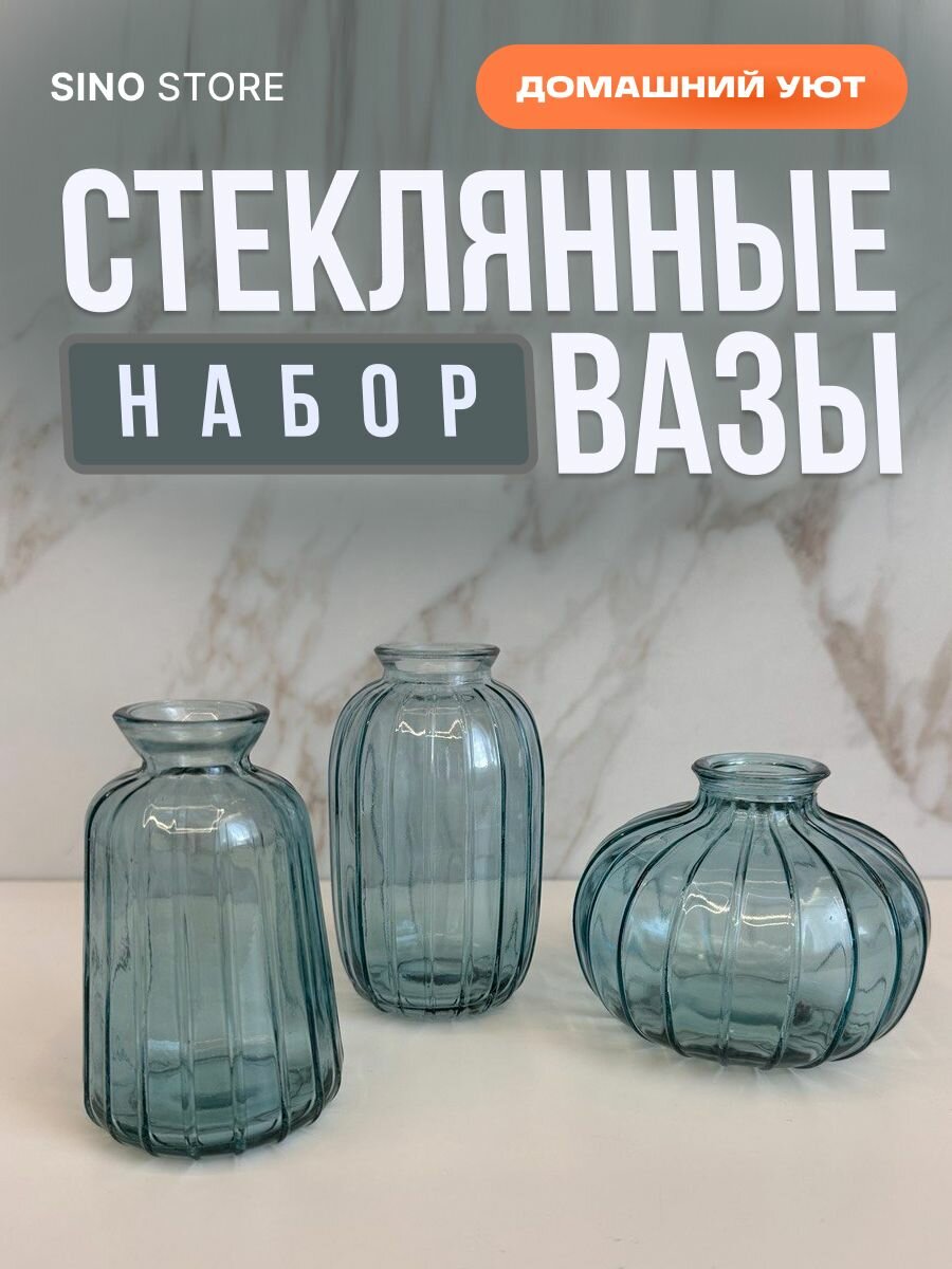 Интерьерный набор стеклянных ваз 3 штуки интересное: