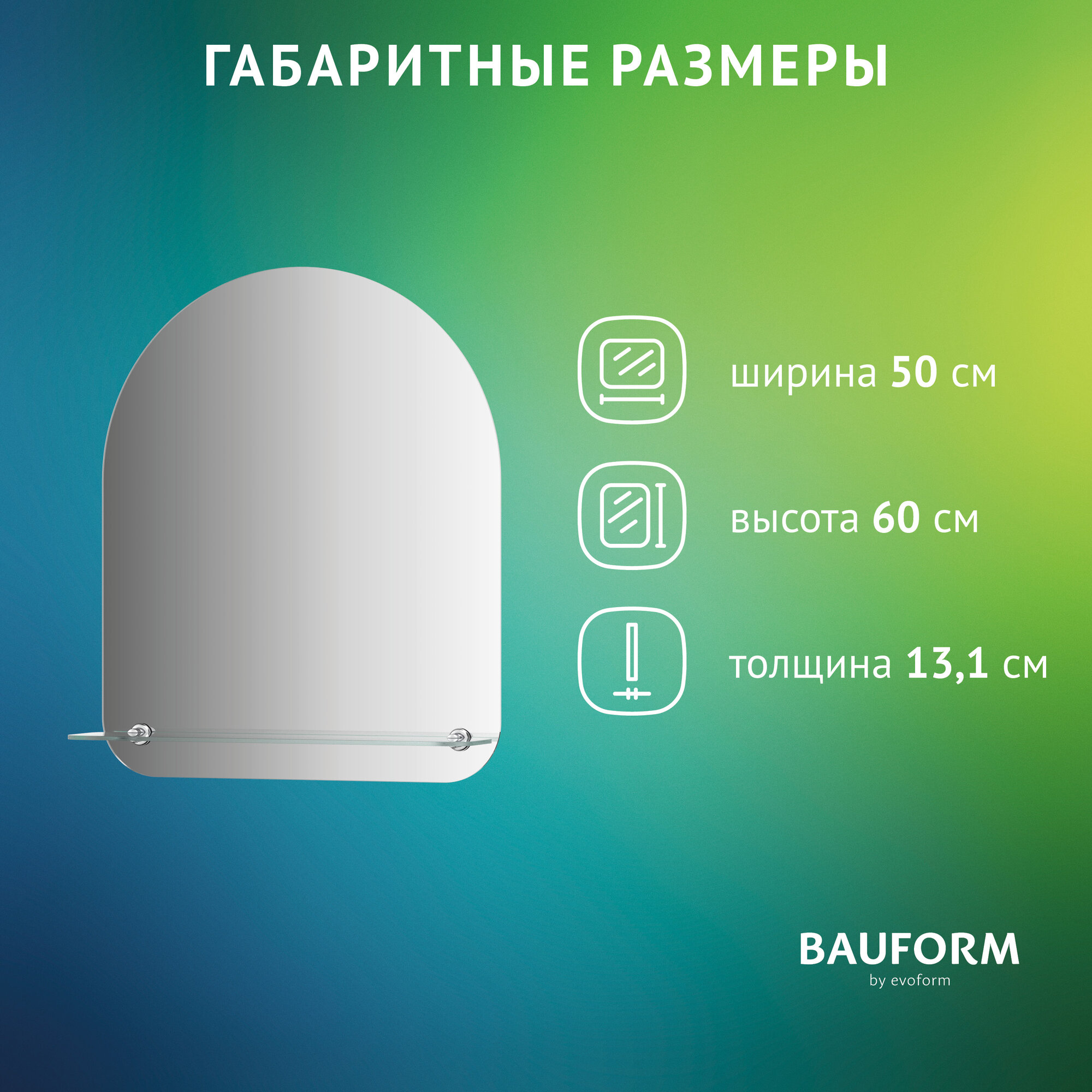 Купить Зеркало настенное с полочкой Арка SHELF EDGE BAUFORM 50х60 см, для гостиной, прихожей, спальни, кабинета и ванной комнаты, SP 9491