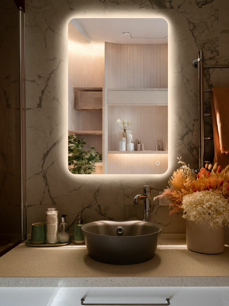 Зеркало с подсветкой в ванную 50 на 70 см.(круглые углы)