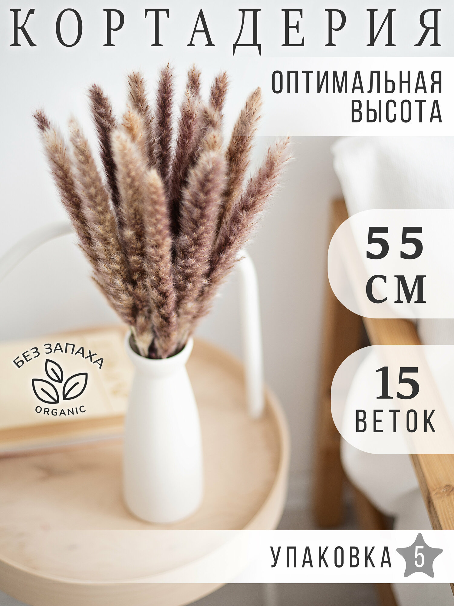 Сухоцвет Пампасная трава шоколадная 15шт, Сухоцветы для декора ARANTA, Букет сухоцветов 55см, 60гр интересное: