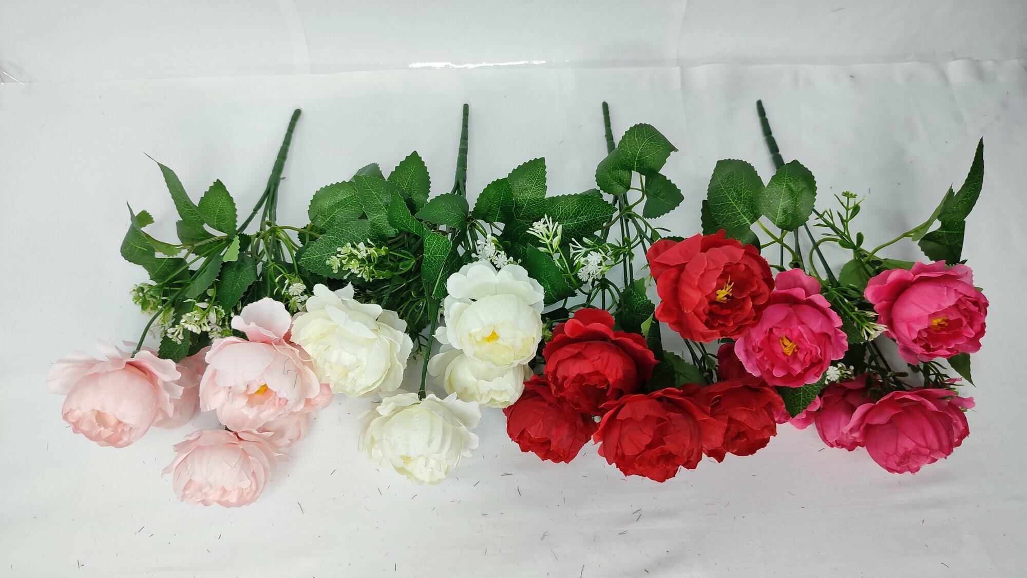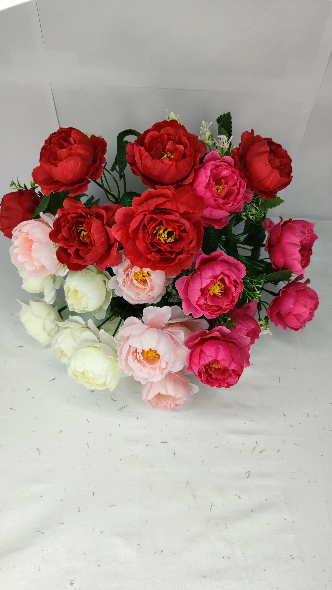 | Подробная комплектация | В наборе 7 букетов пионов разного цвета |