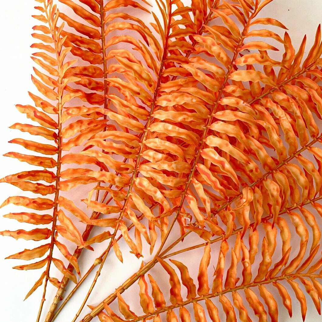 Купить Пальма, искусственная зелень для декора, цвет Оранжевый, ветки 75 см, 10 листьев, в наборе 2 ветки