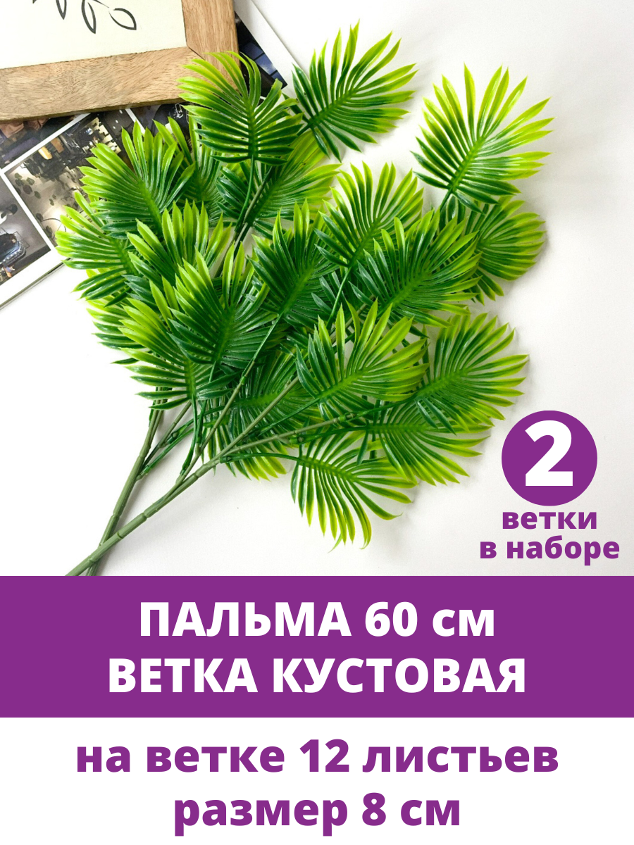 Купить Пальма, ветка кустовая, искусственная зелень, 60 см, набор 2 ветки
