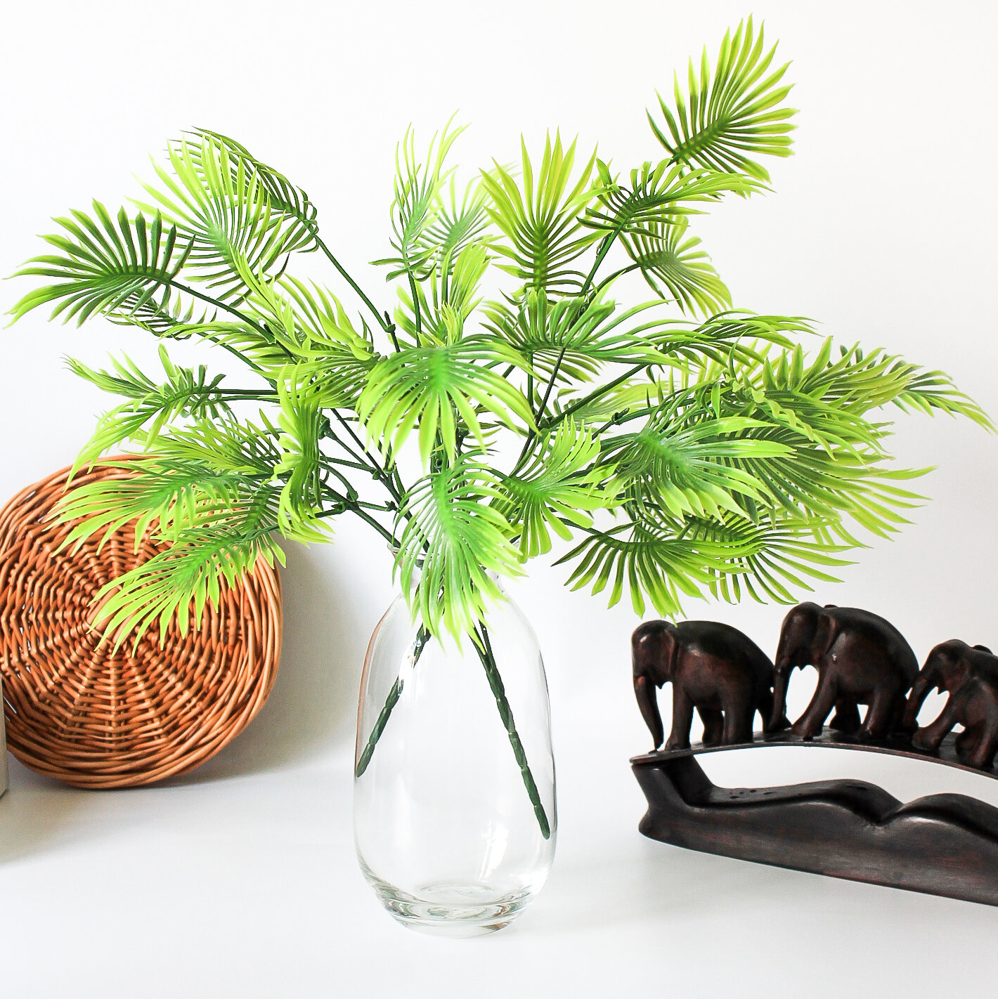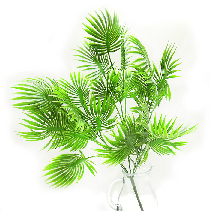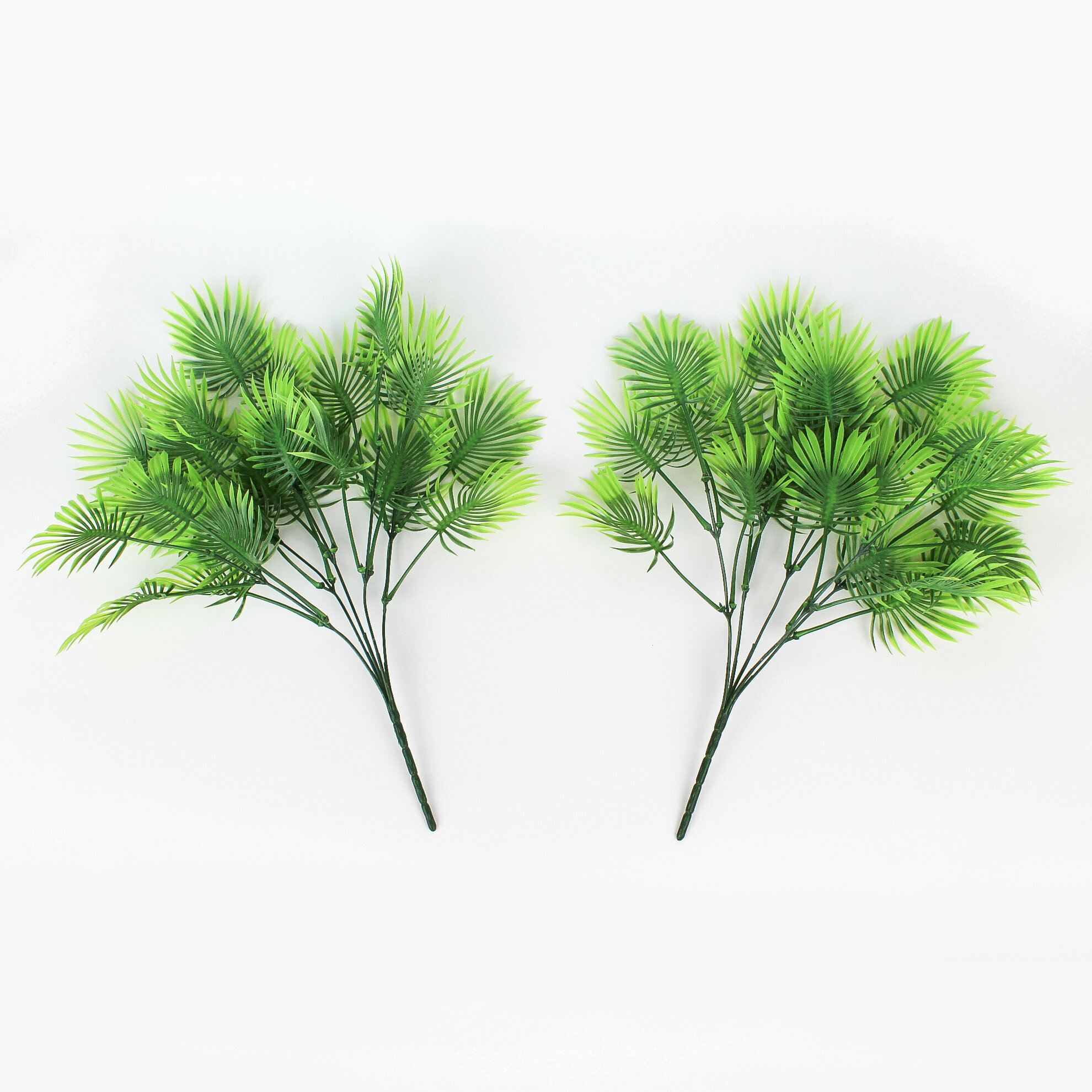 Пальма, зеленая, искусственная зелень в букете 7 веток, букет 40 см, набор 2 букета