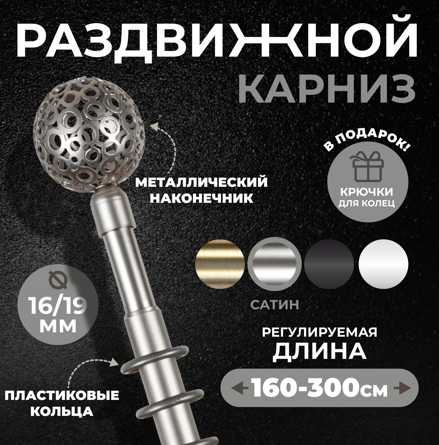 Купить Карниз для штор металлический однорядный раздвижной Ажур 16/19мм 160-300 см сатин