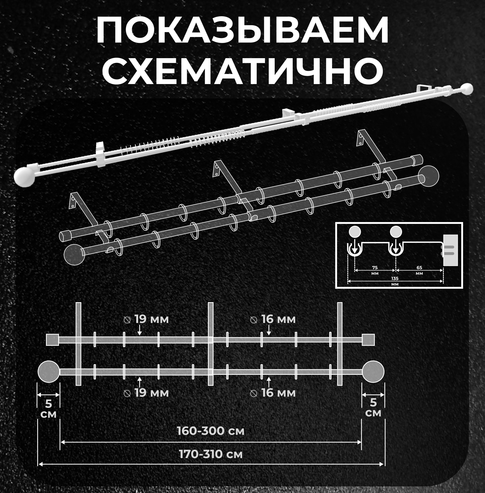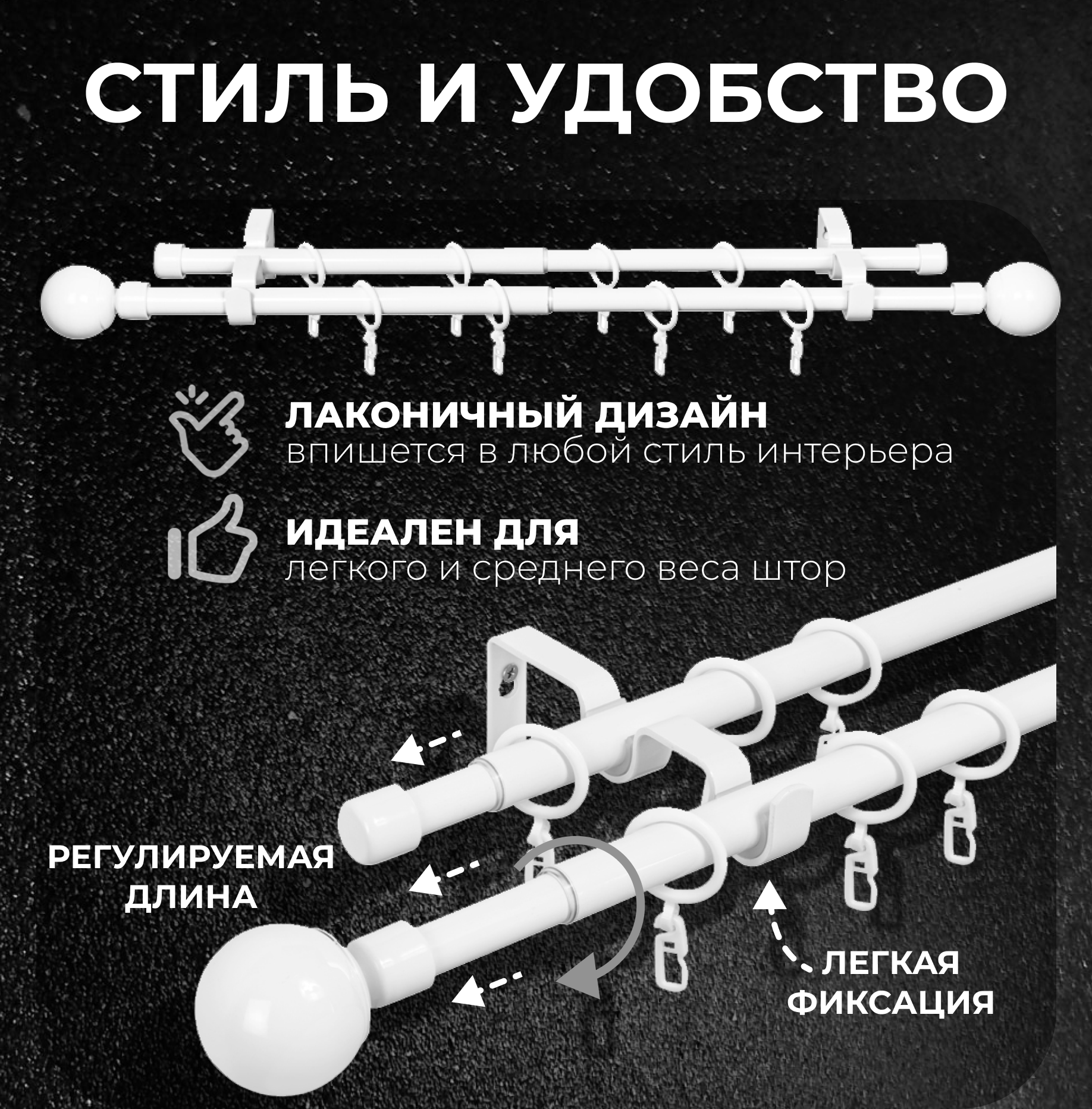 СохранитьКарниз для штор металлический двухрядный раздвижной Сфера 16/19мм 160-300 см белый глянец интересное: