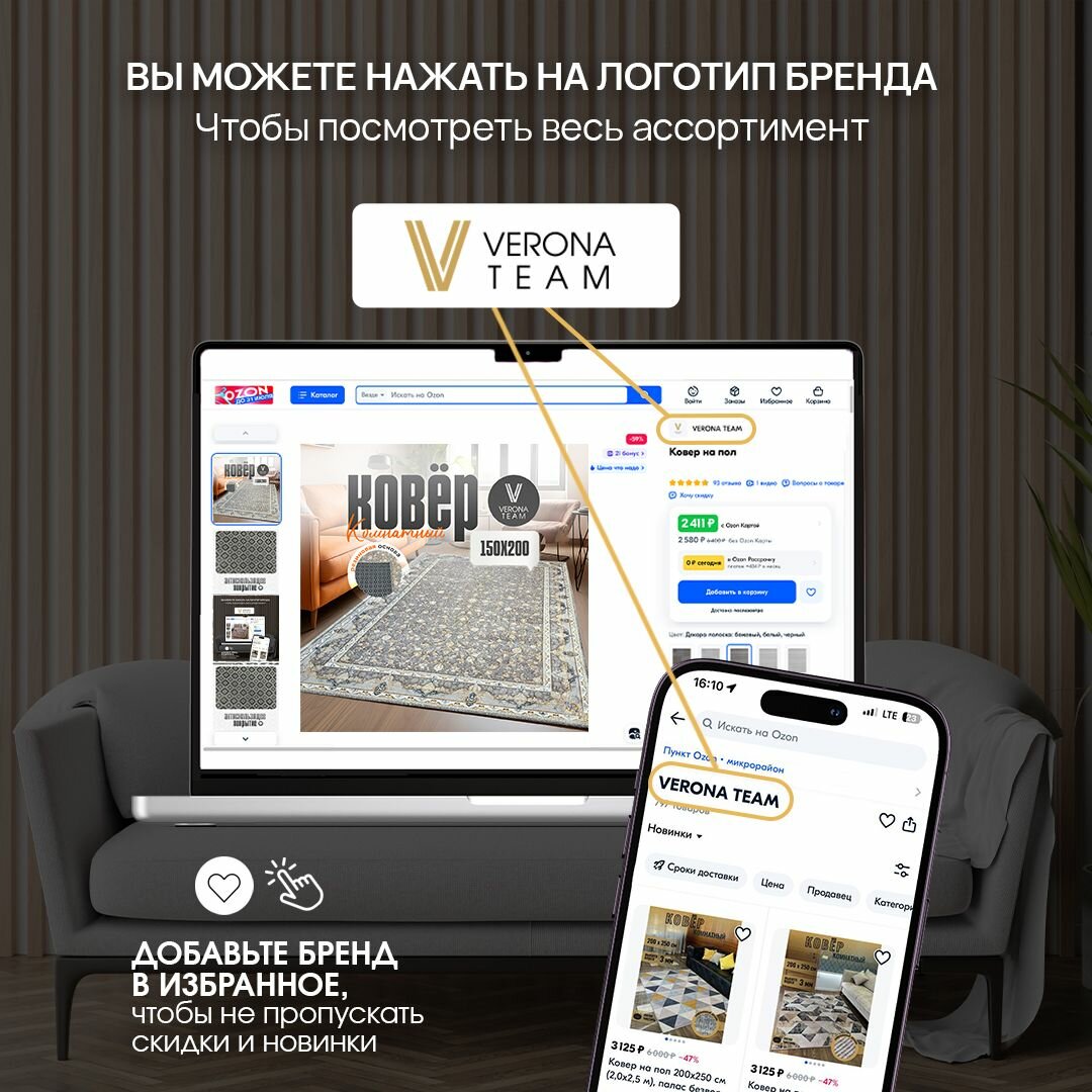 Ковер на пол 150х200 см (1,5х2 м), палас для комнаты, VERONA TEAM интересное:
