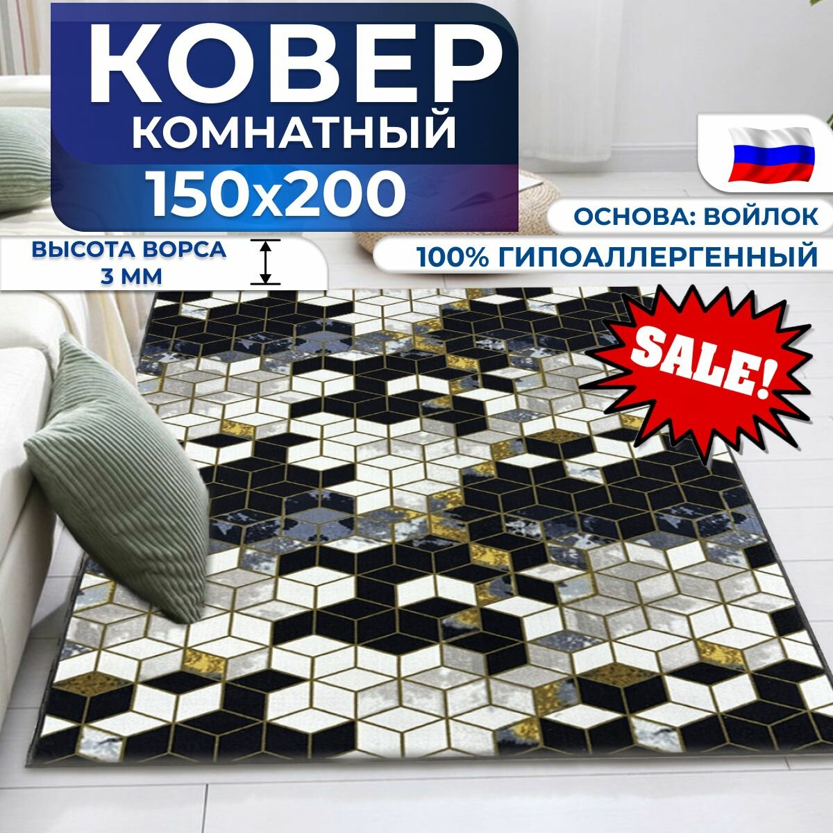 СохранитьКовер комнатный на пол, палас "Кубики" 150х200 см интересное: