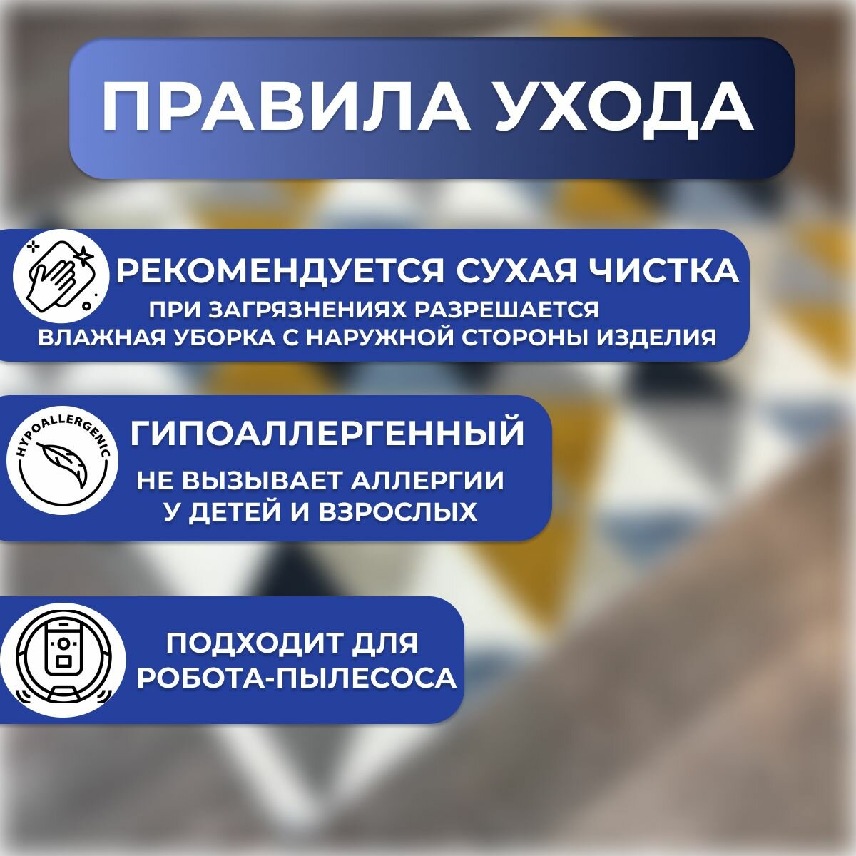 Ковер безворсовый, палас 100x100 см