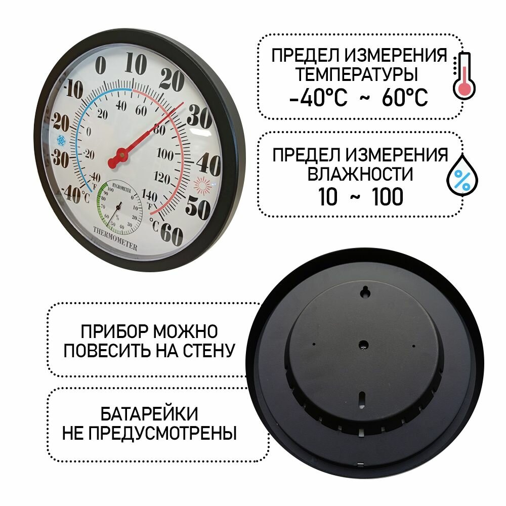 Термометр гигрометр механический TH-9250-PBC цвет черный интересное: