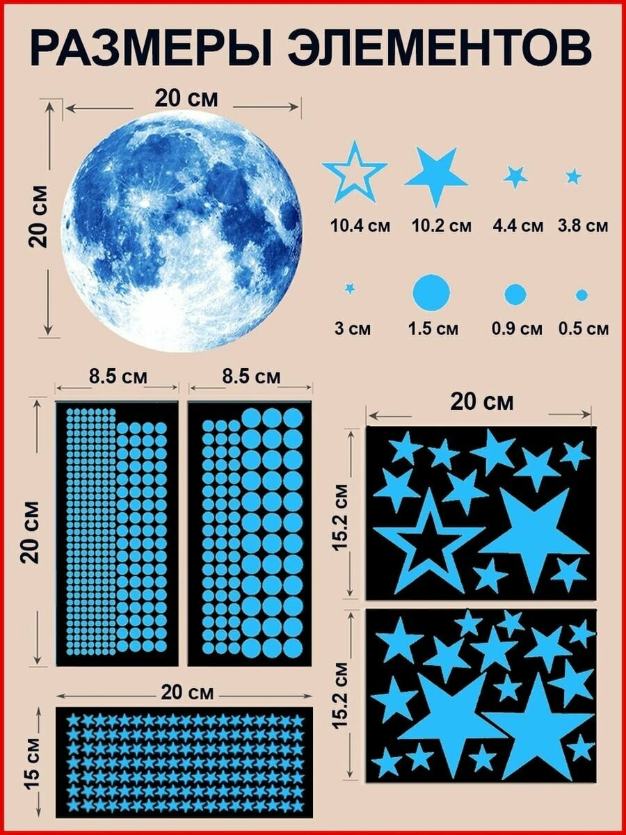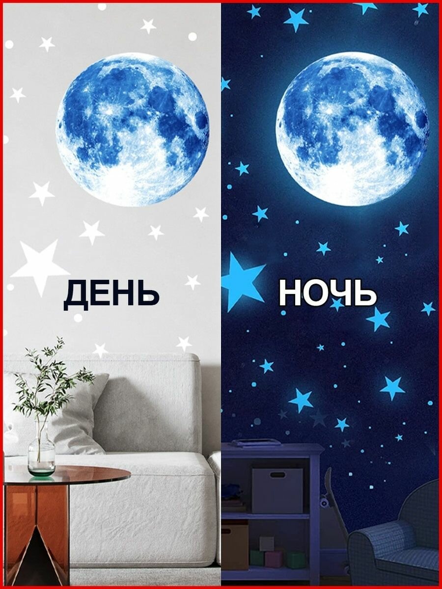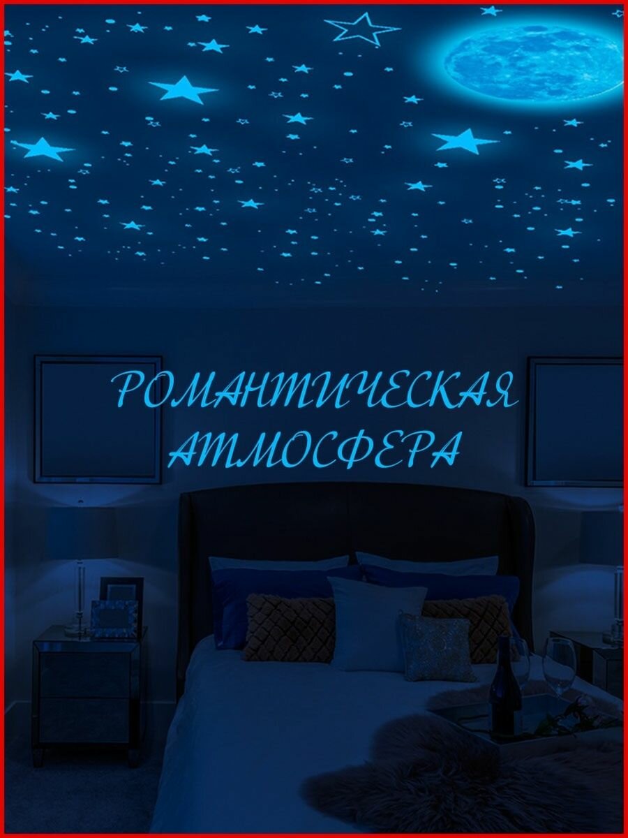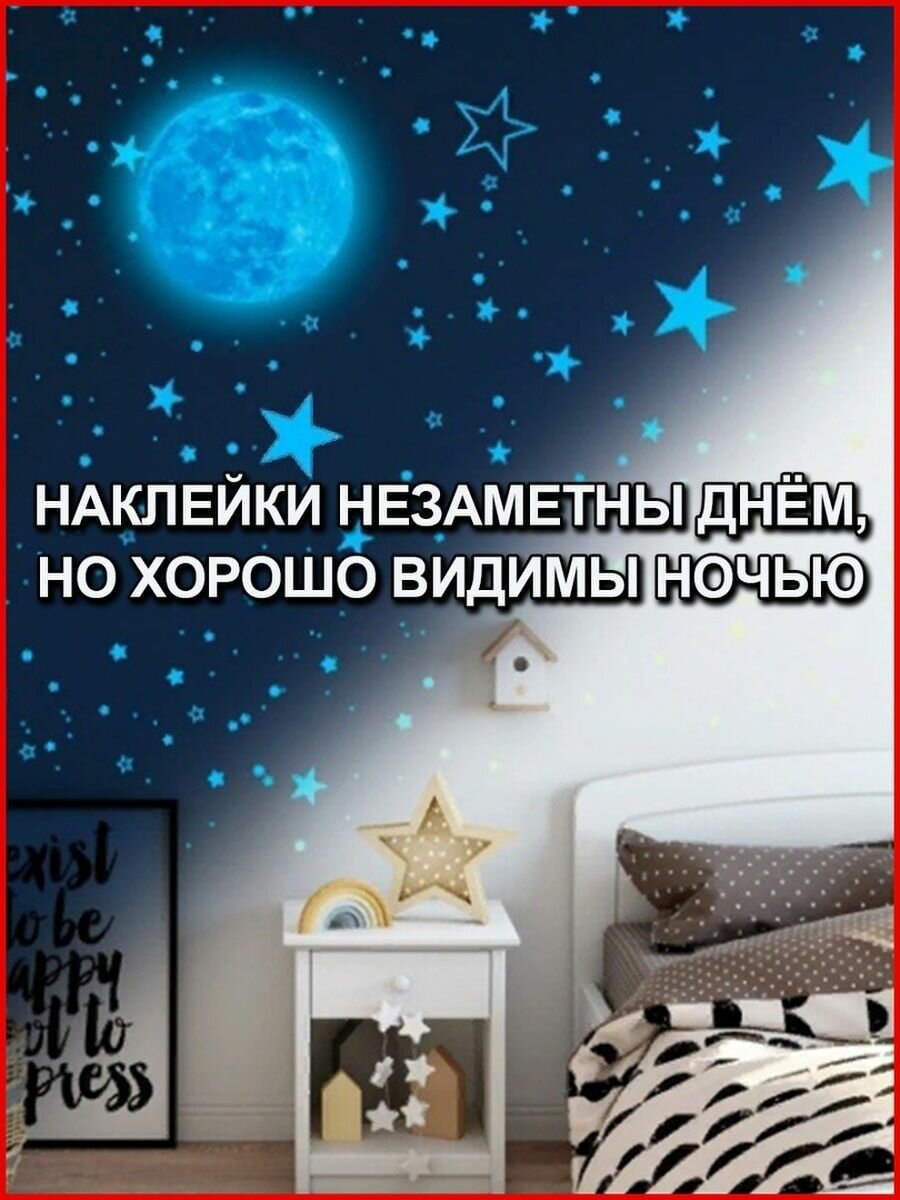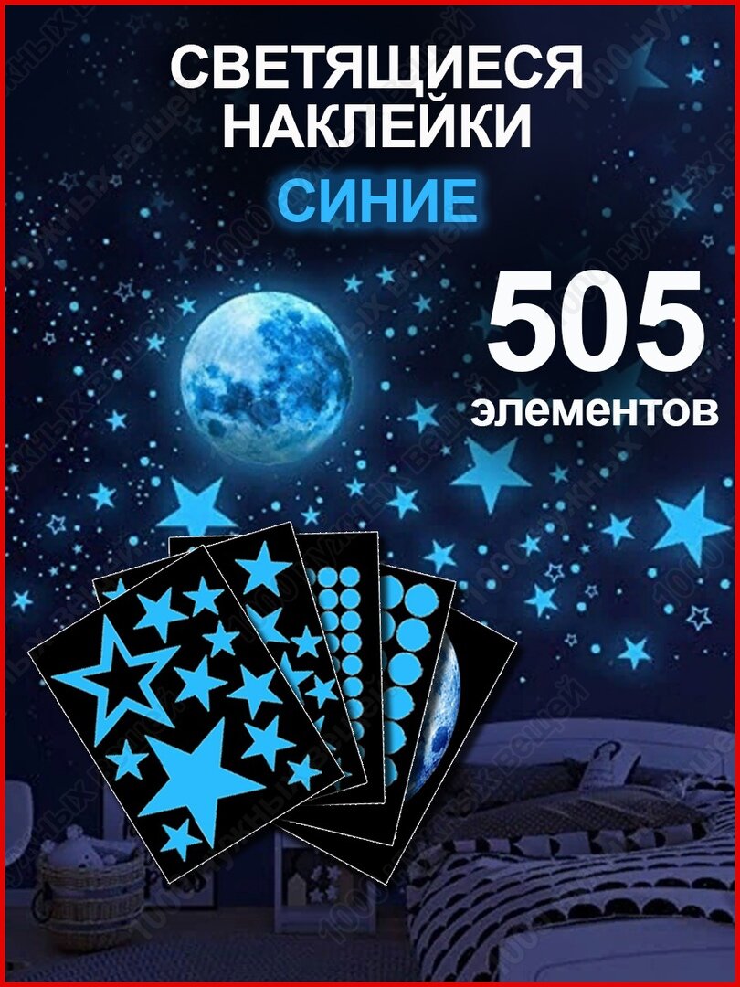 Наклейки светящиеся в темноте звезды и Луна / Наклейки интерьерные на стены потолок / Синие 505 элементов интересное: