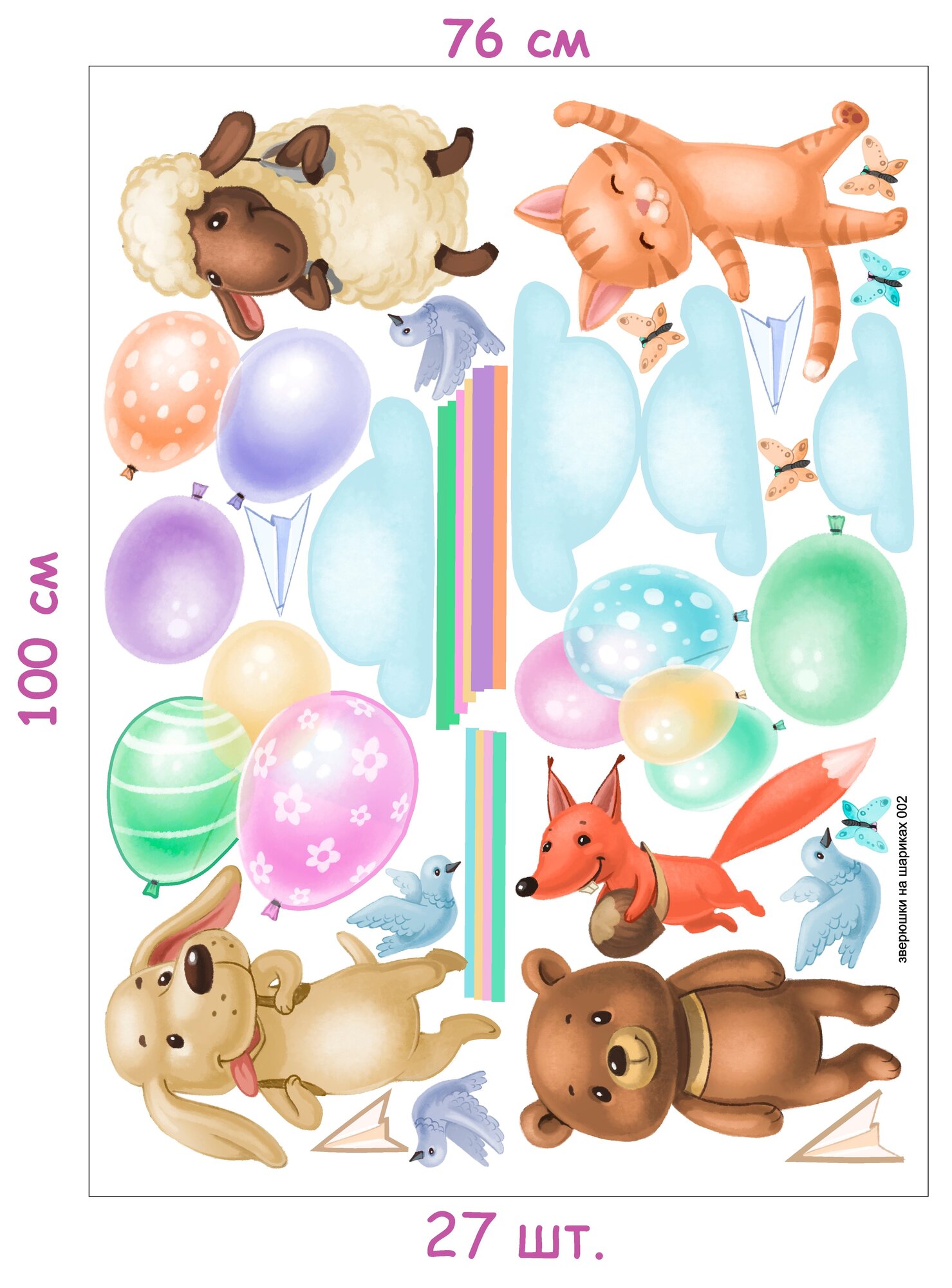 Купить Интерьерные наклейки на стену для декора и интерьера дома зверюшки на шариках