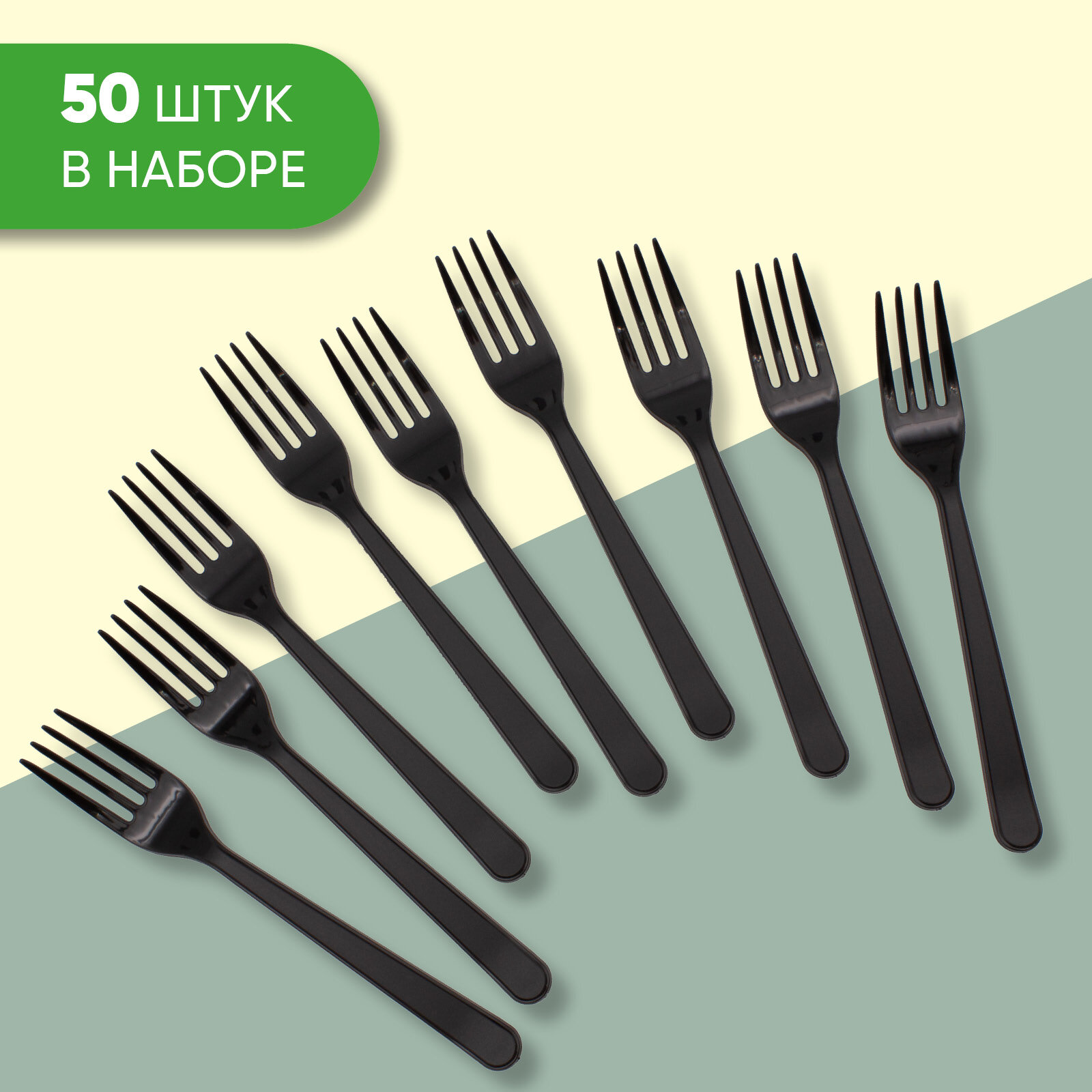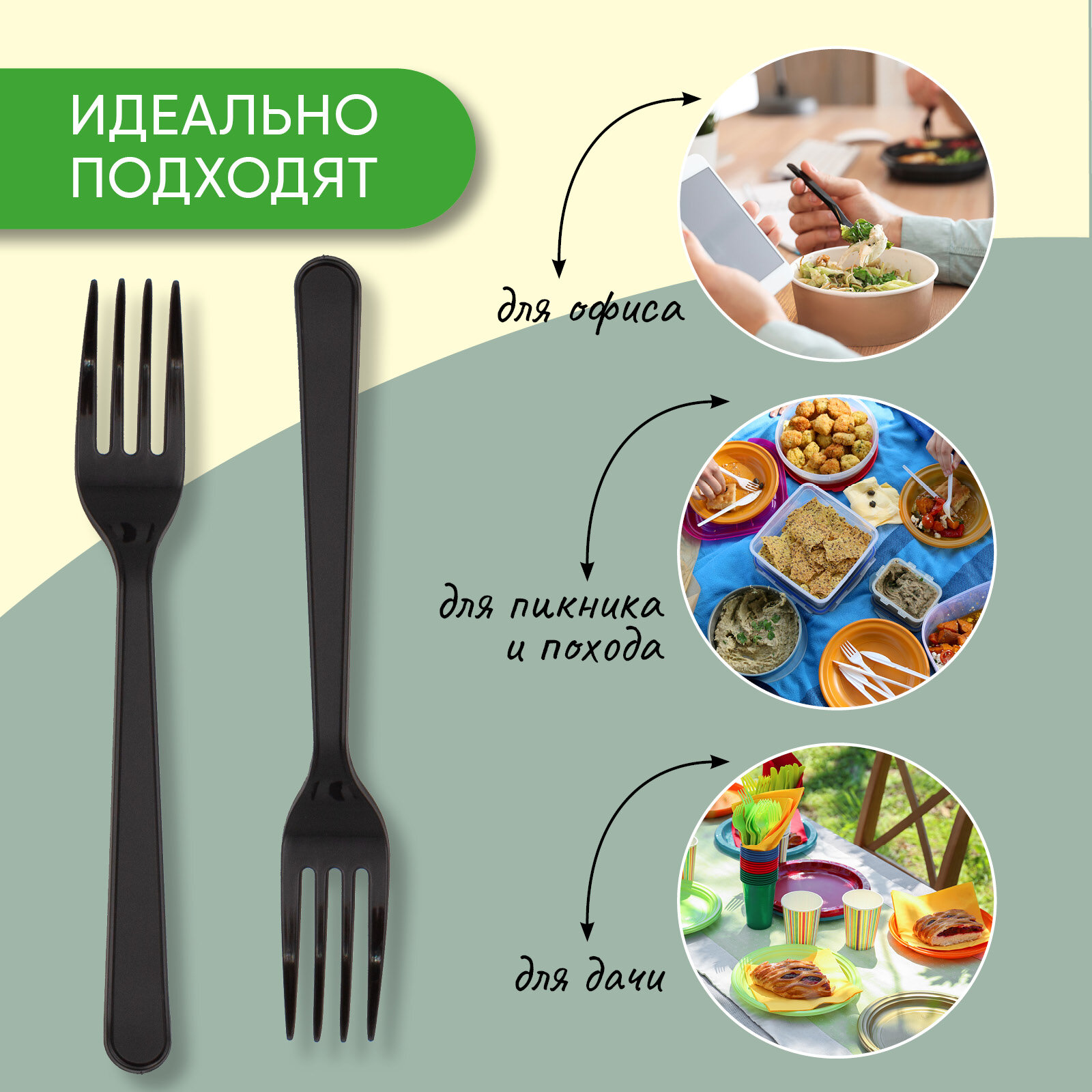 Вилка столовая одноразовая пластиковая 180 мм черная компакт премиум, 50 штук Optiline интересное: